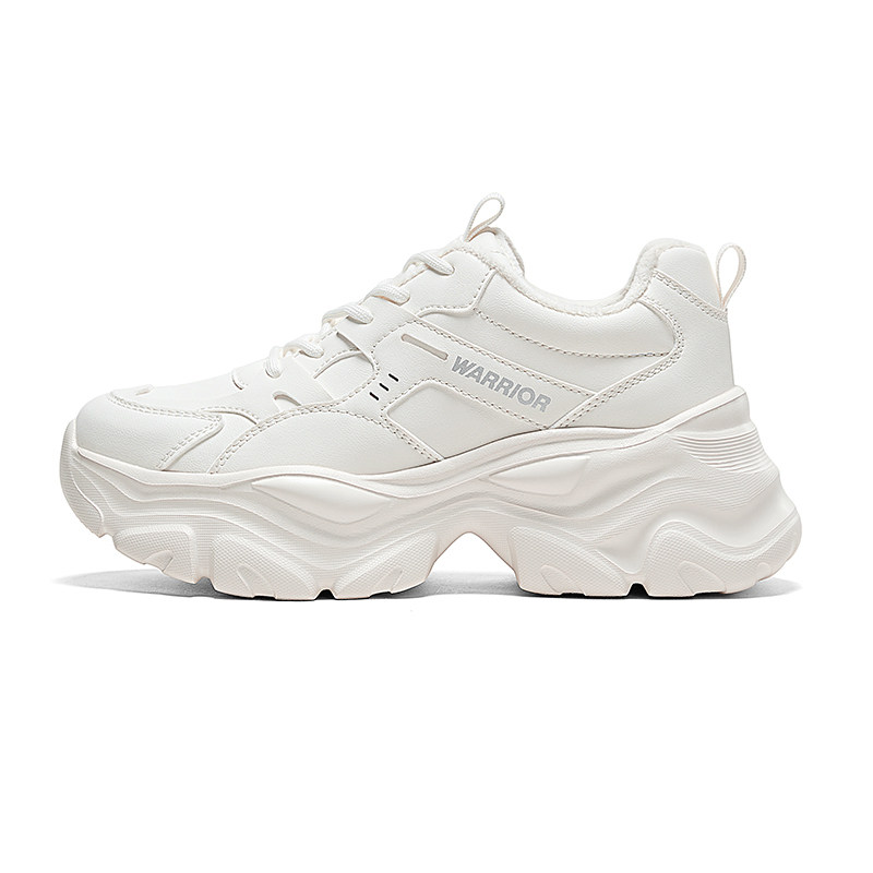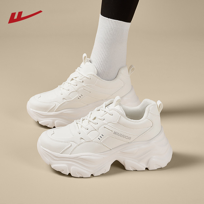 回力加绒女鞋2025冬季新款老爹鞋保暖厚底鞋子女款皮面运动小白鞋