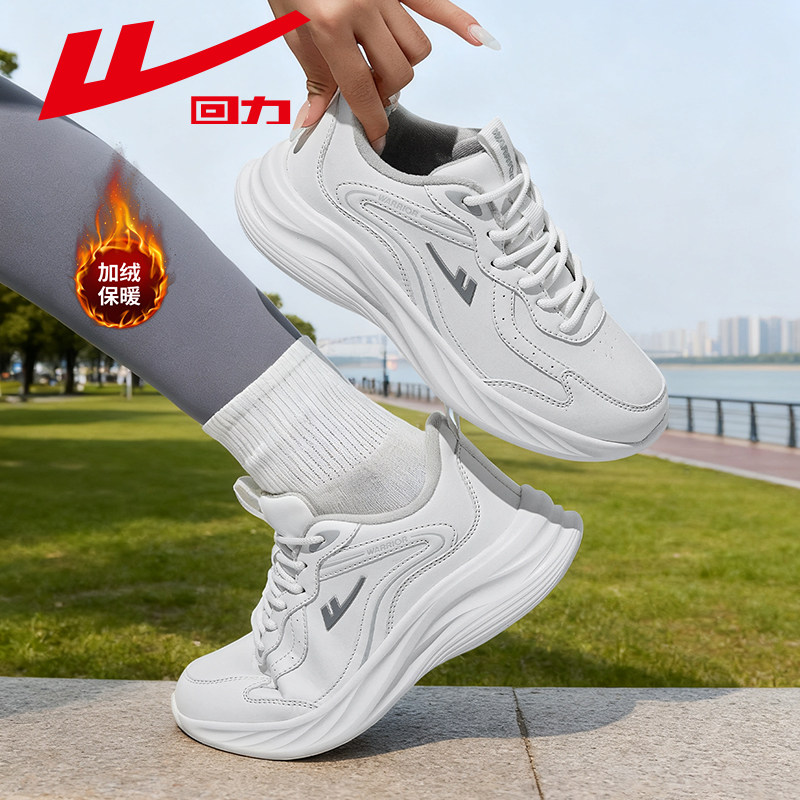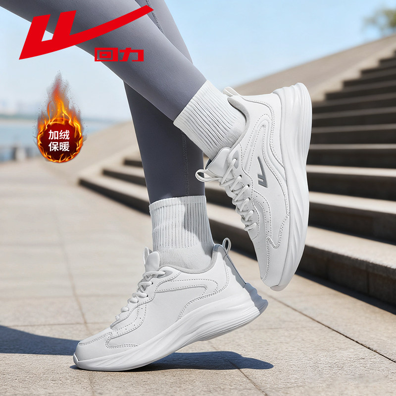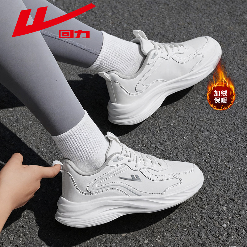 回力女鞋跑步鞋冬季加绒皮面软底减震女款防泼水轻便妈妈运动鞋子