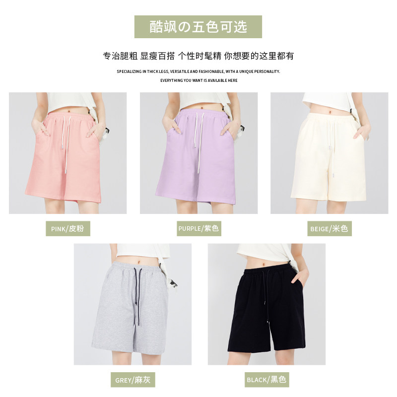 拉夏贝尔休闲运动短裤女款小个子春秋阔腿五分裤显瘦宽松纯棉裤子