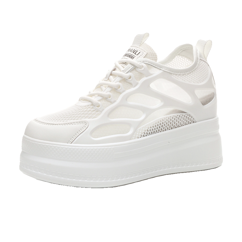 2024夏季真皮内增高休闲鞋女小个子9公分显瘦女鞋网面透气小白鞋