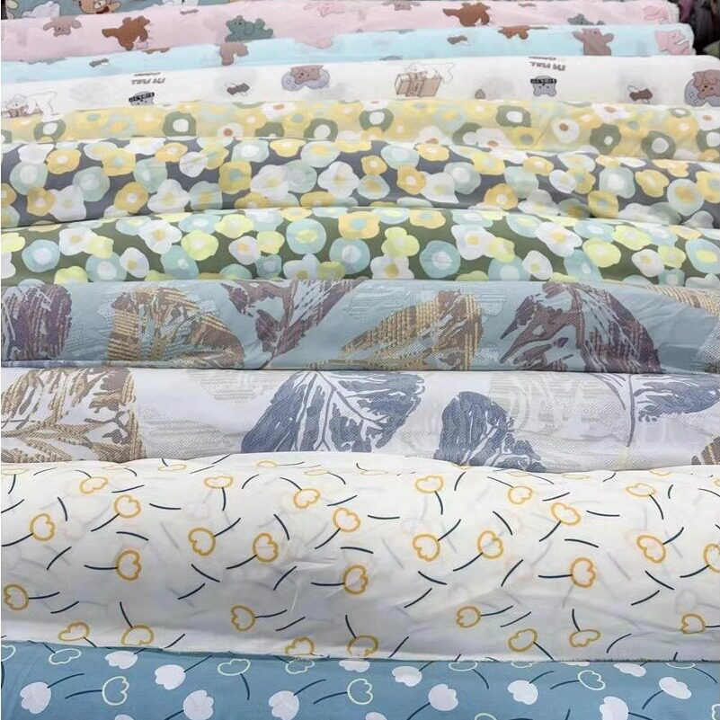 新款1.6米宽人造棉棉绸布料卡通绵绸条纹被罩夹被床单夏凉被面料