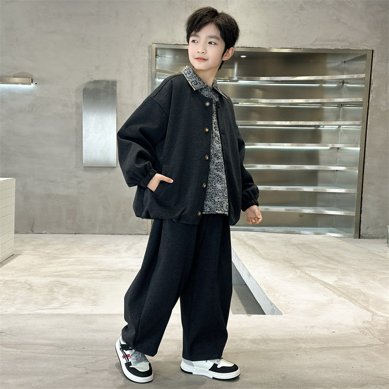 儿童装男童套装春装2026新款中大童春秋款外套休闲男孩春季三件套