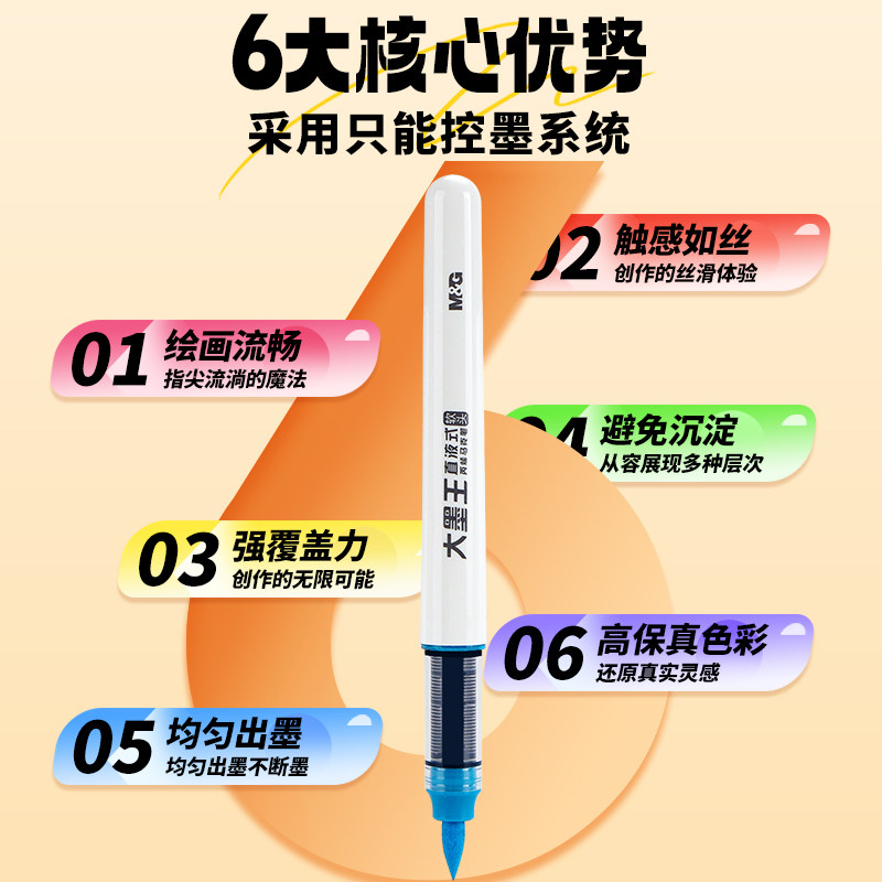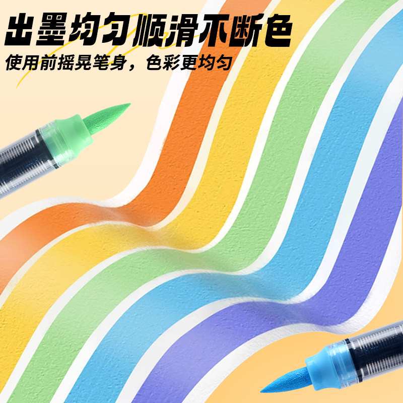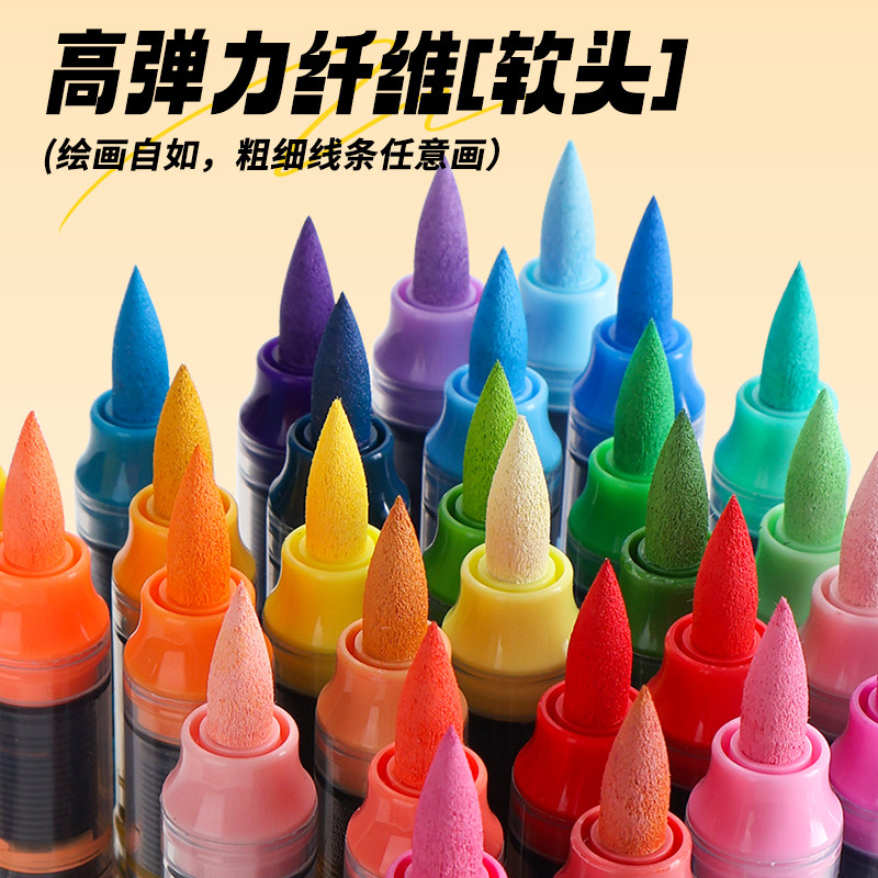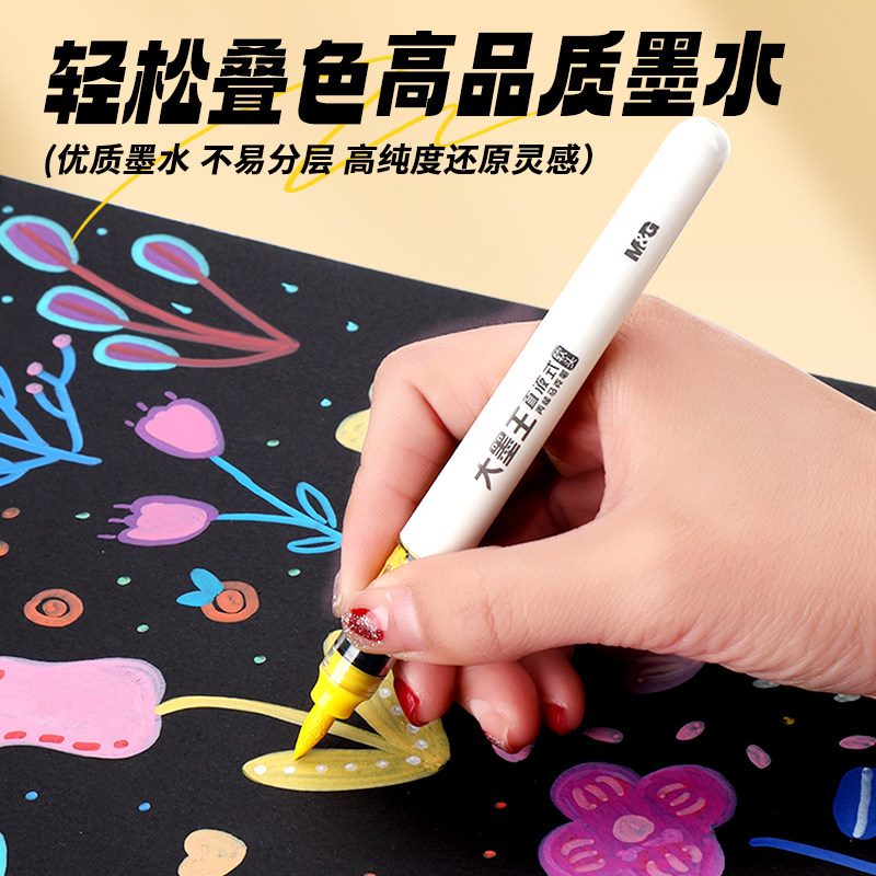 晨光直液式丙烯马克笔学生专用儿童绘画美术DIY彩色可水洗可叠色大墨王软头幼儿园涂鸦24色/12/36/48色不透纸