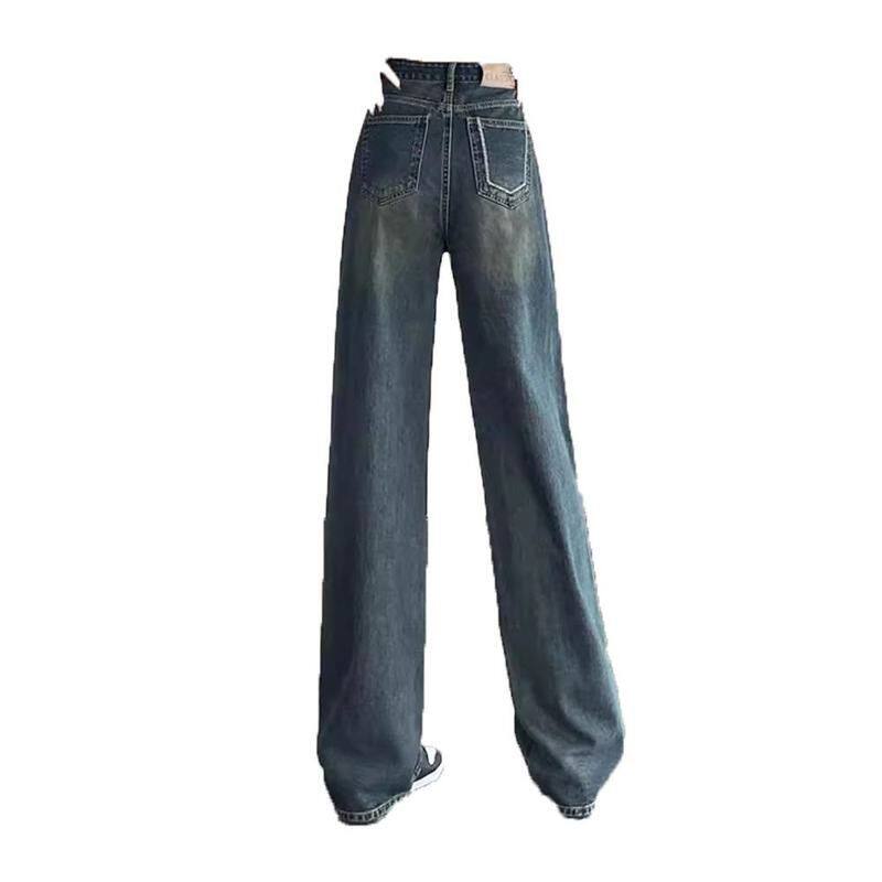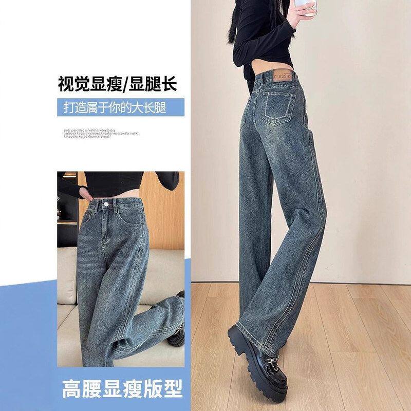 复古加绒加厚阔腿牛仔裤女2025冬季新款高腰宽松显瘦直筒拖地裤子