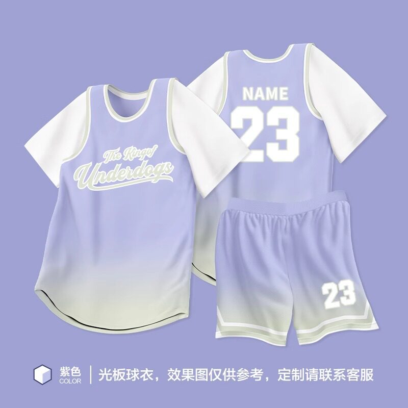 篮球服女定制运动套装球衣成人儿童训练队服男假两件有袖比赛班服