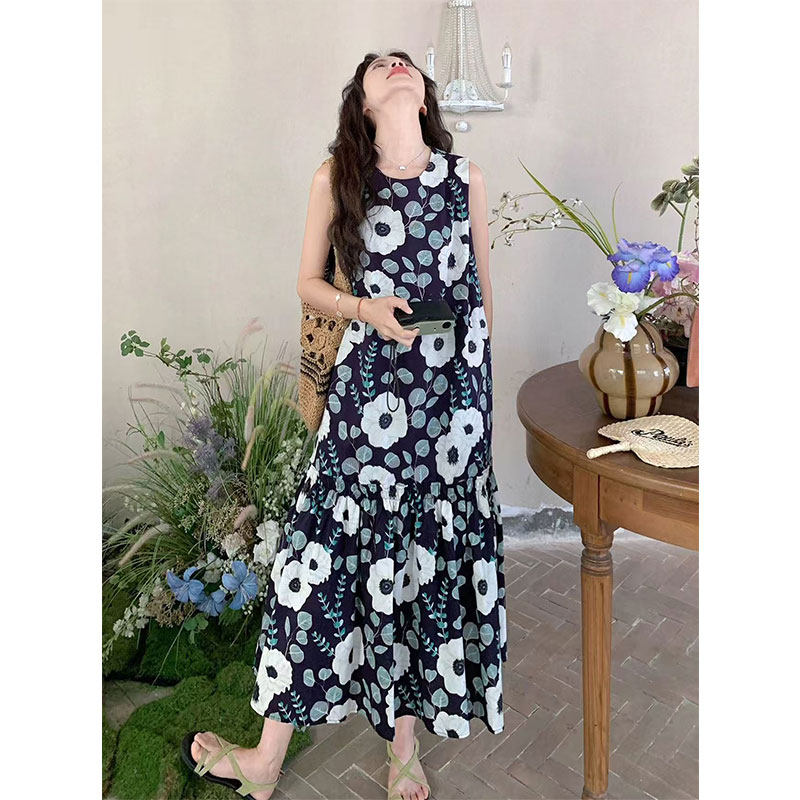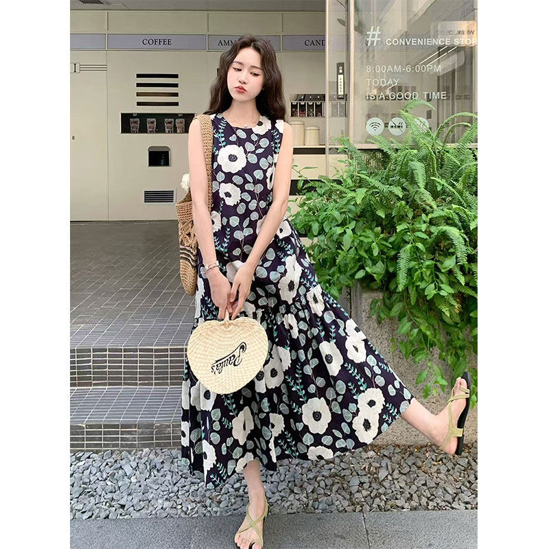 碎花连衣裙女夏高级感减龄海边度假宽松显瘦沙滩背心裙~清仓尾货