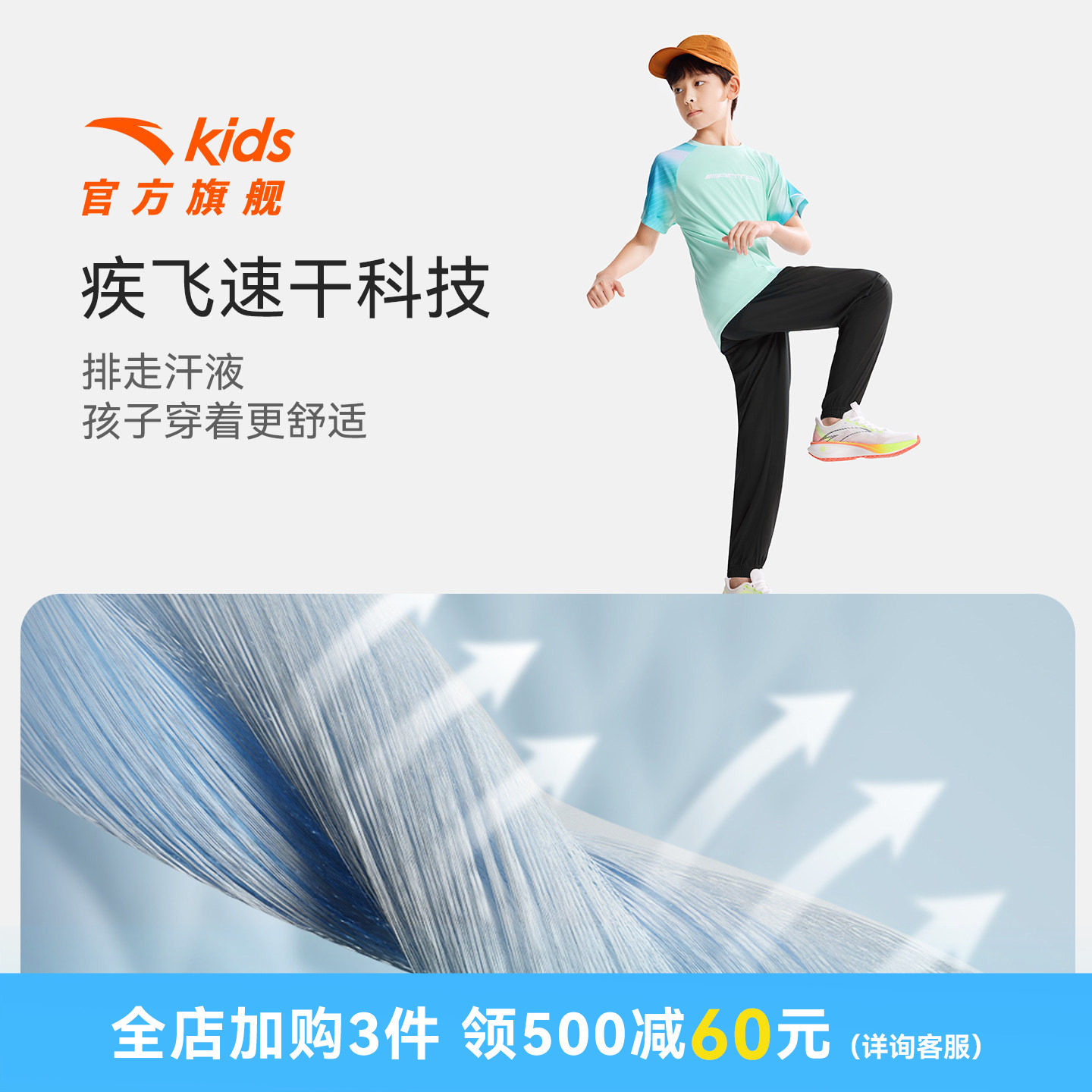 安踏儿童男女童针织运动套2026夏季新款透气儿童速干短袖长裤套装