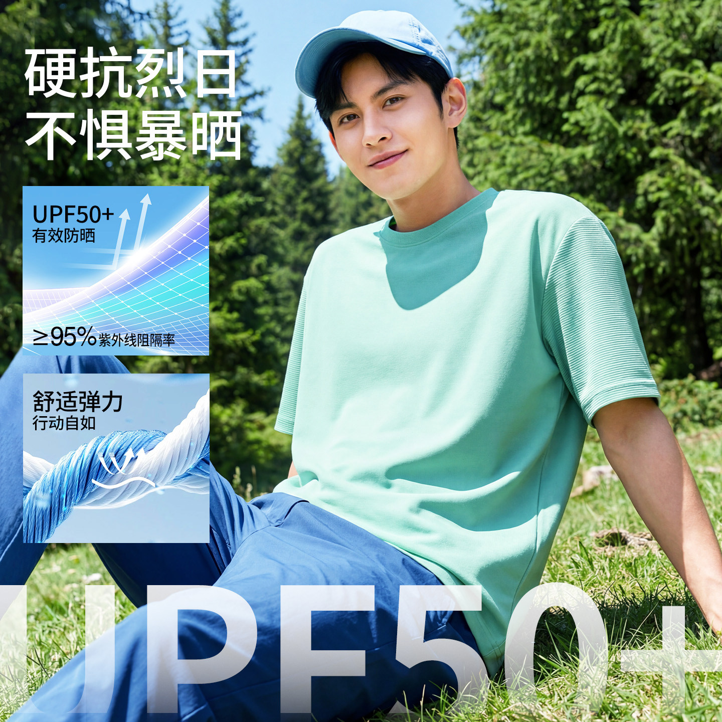 班尼路S&K系列冰丝防晒短袖t恤男款夏季青少年蓝色运动半袖上衣LF