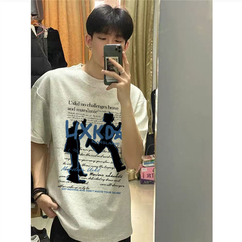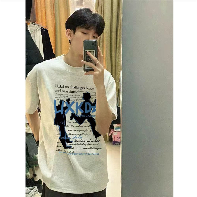 重磅纯棉美式复古正肩短袖t恤男夏季宽松慵懒青少年潮牌半袖上衣