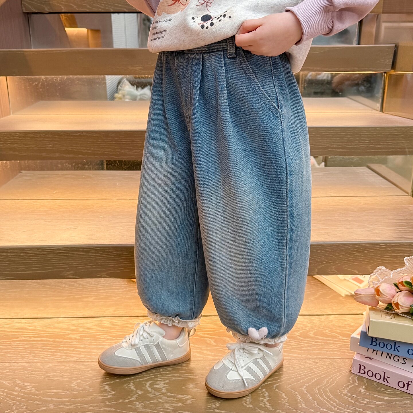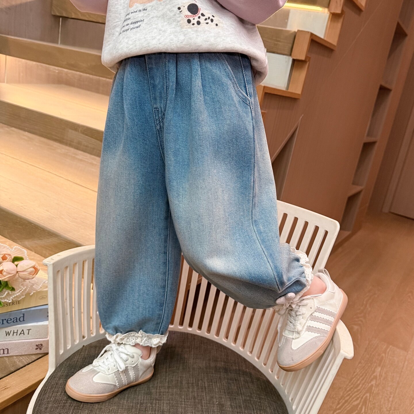 311线报网描述:女童裤子2026新款今年流行爆款,花边牛仔裤