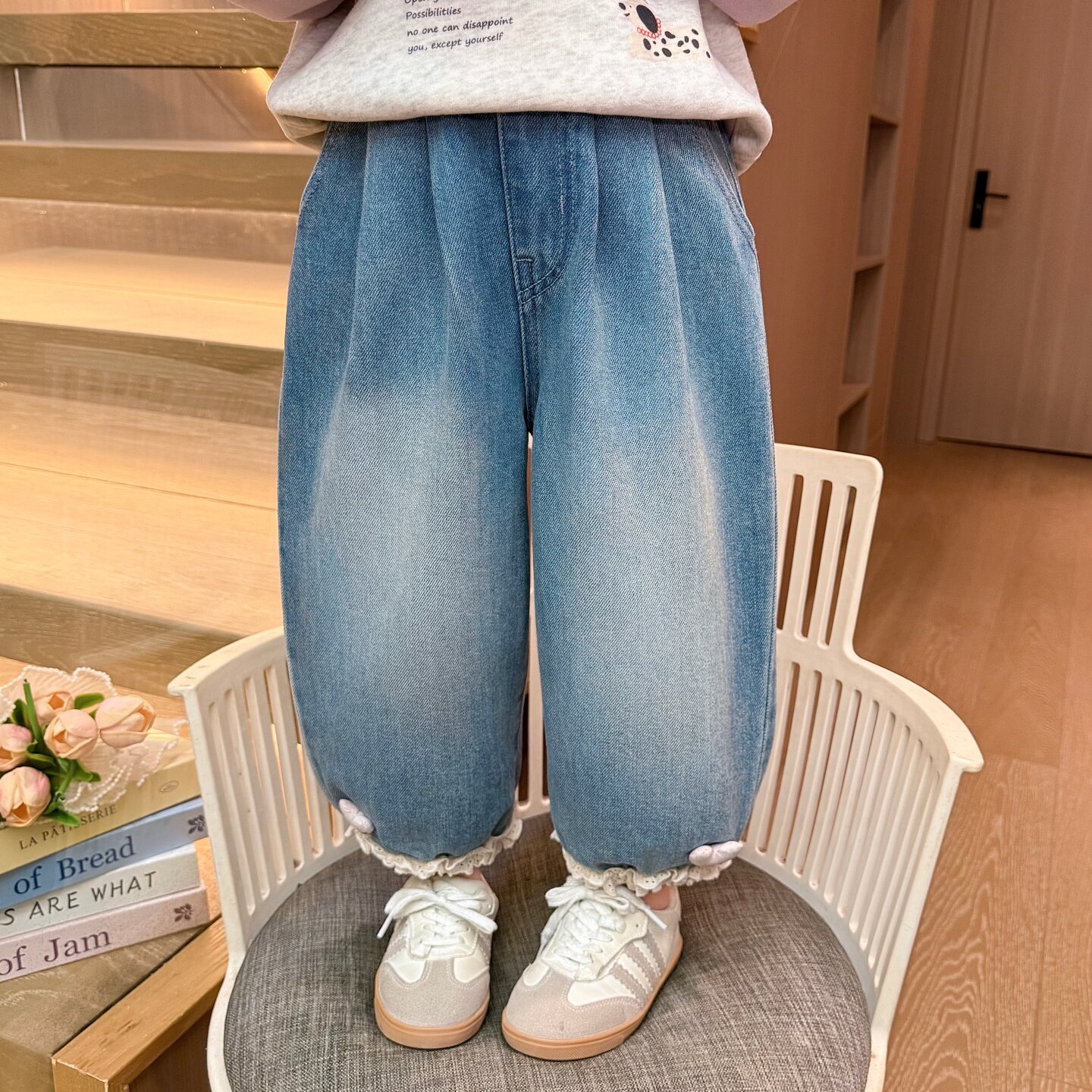 女童裤子春秋季2026新款超好看炸街儿童灯笼裤宝宝春装洋气牛仔裤