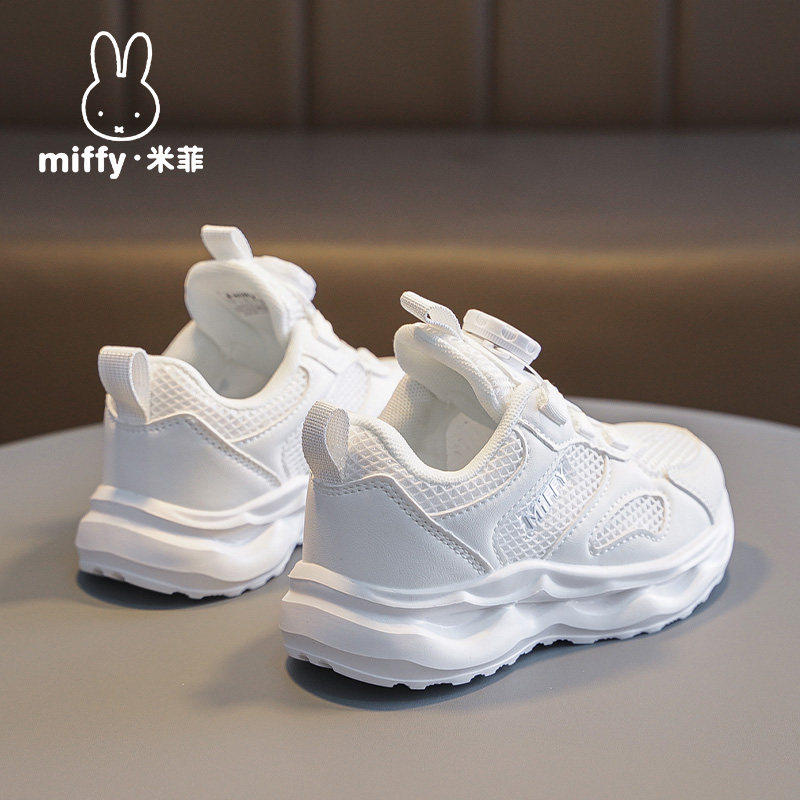 米菲女童鞋子2026春夏季新款儿童透气网面女孩单网薄款白色运动鞋