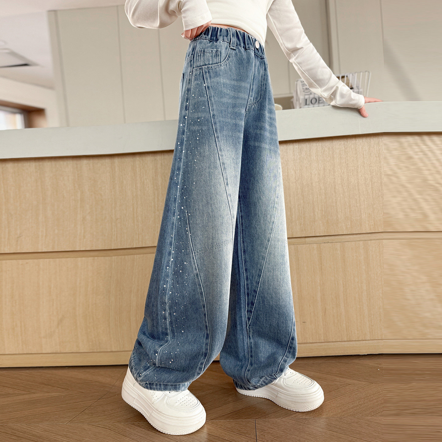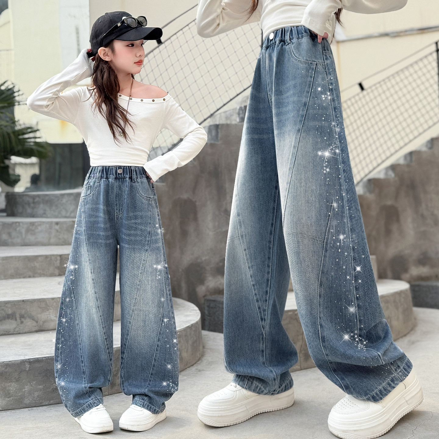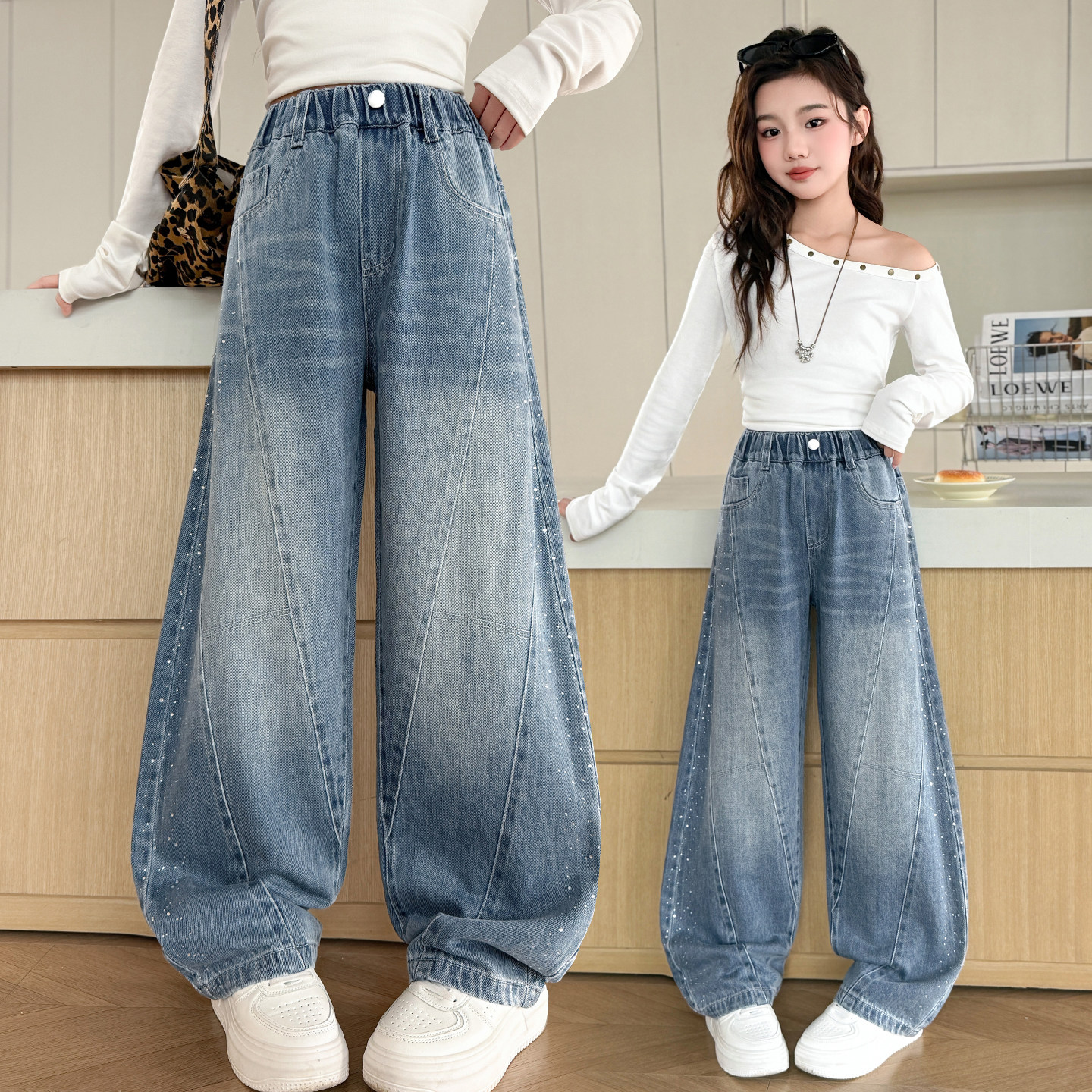 女童裤子春秋外穿2026新款中大童女孩春季韩版休闲百搭牛仔阔腿裤