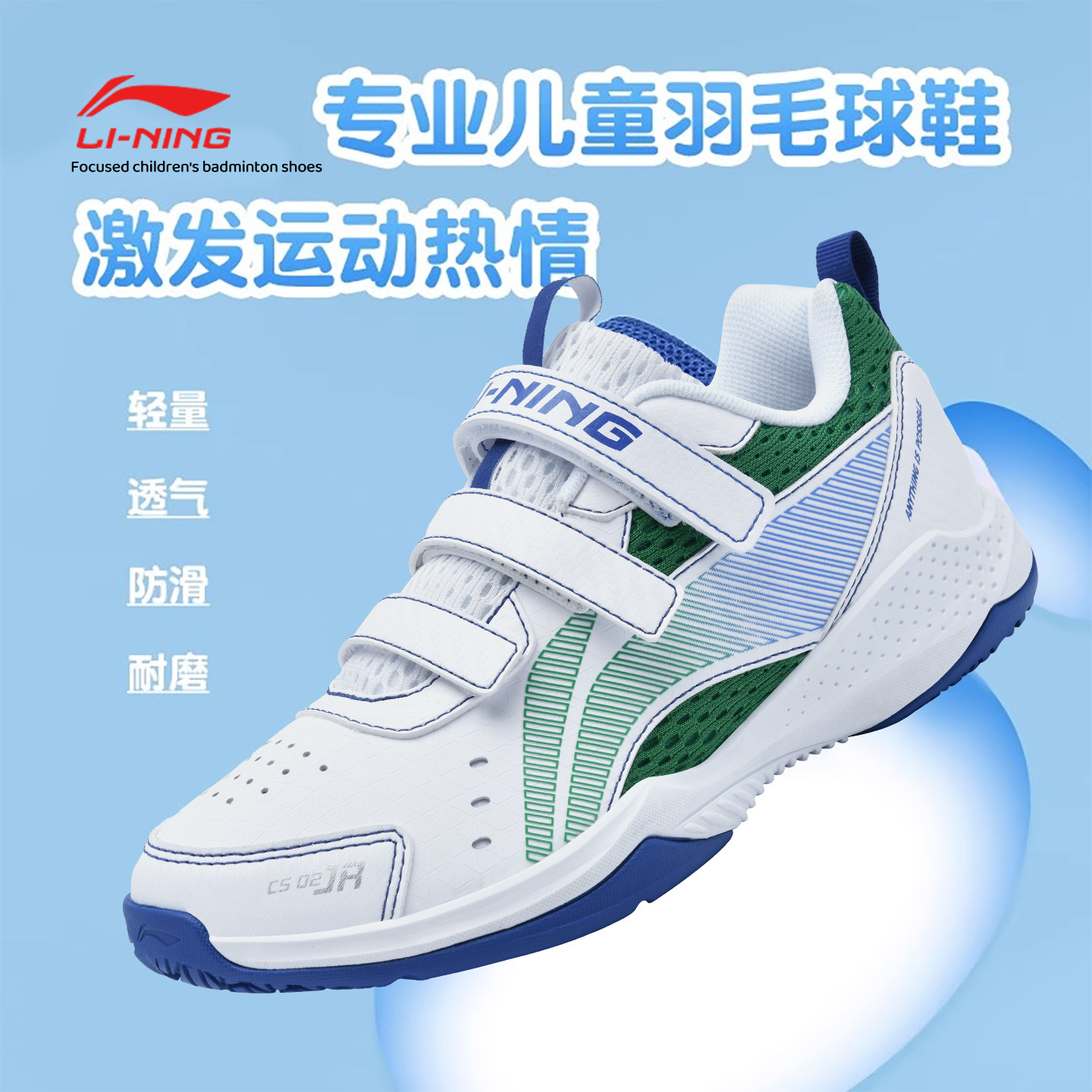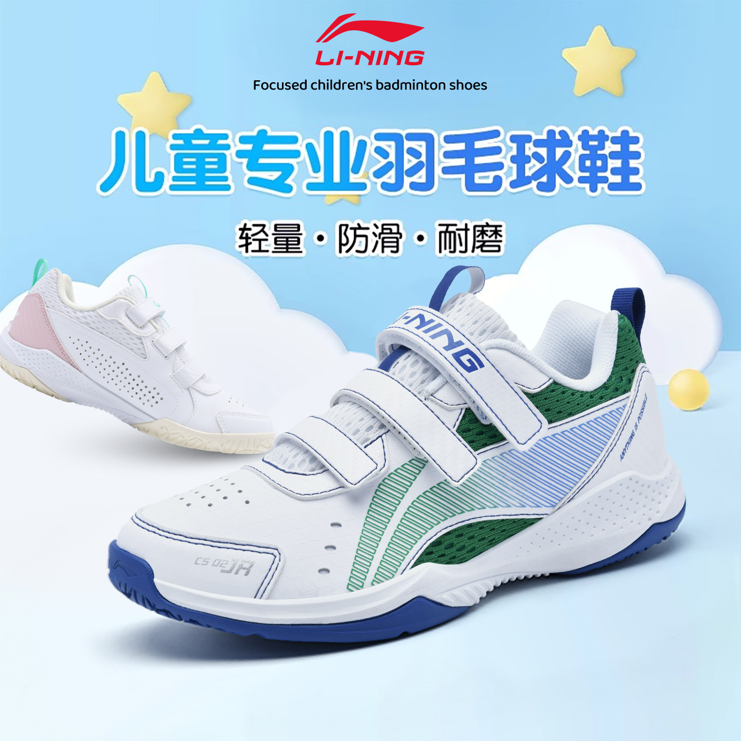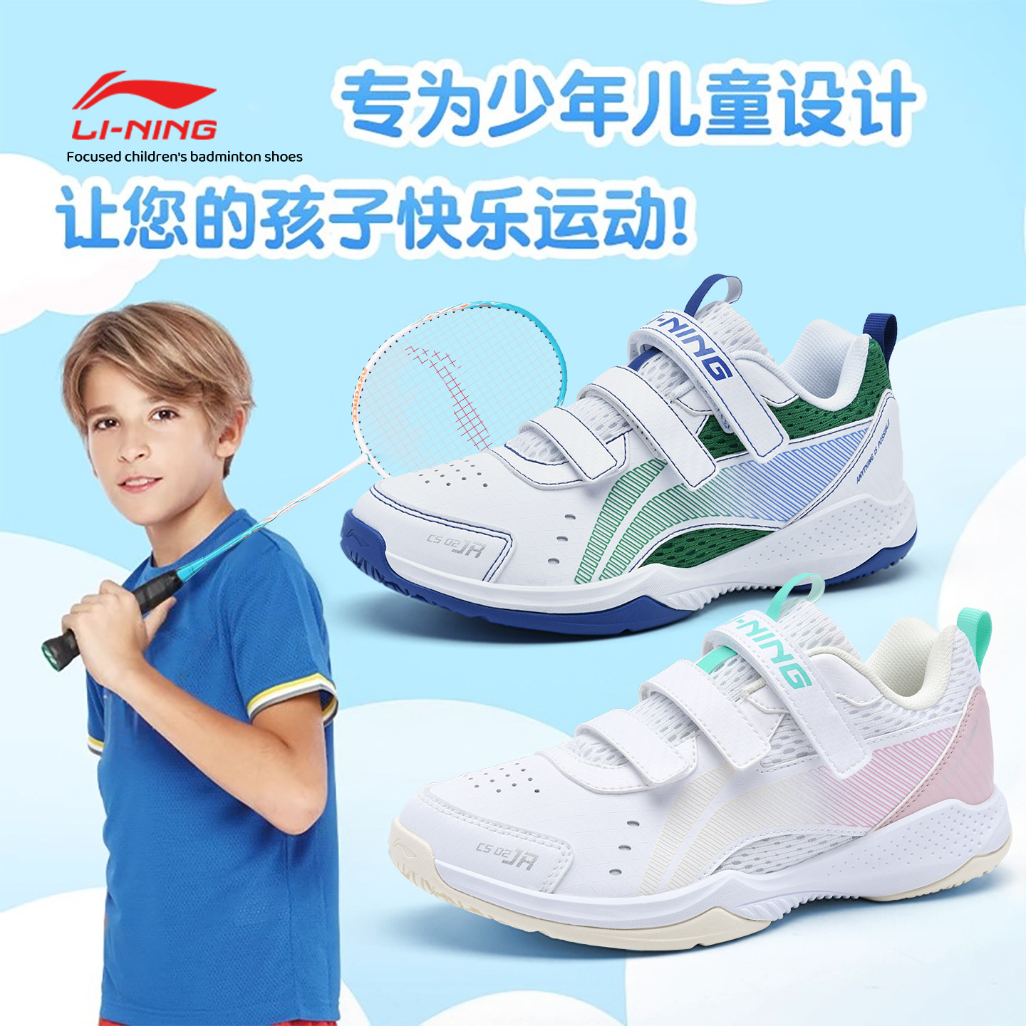 李宁正品儿童羽毛球鞋男童女童青少年魔术贴防滑专业 比赛训练鞋