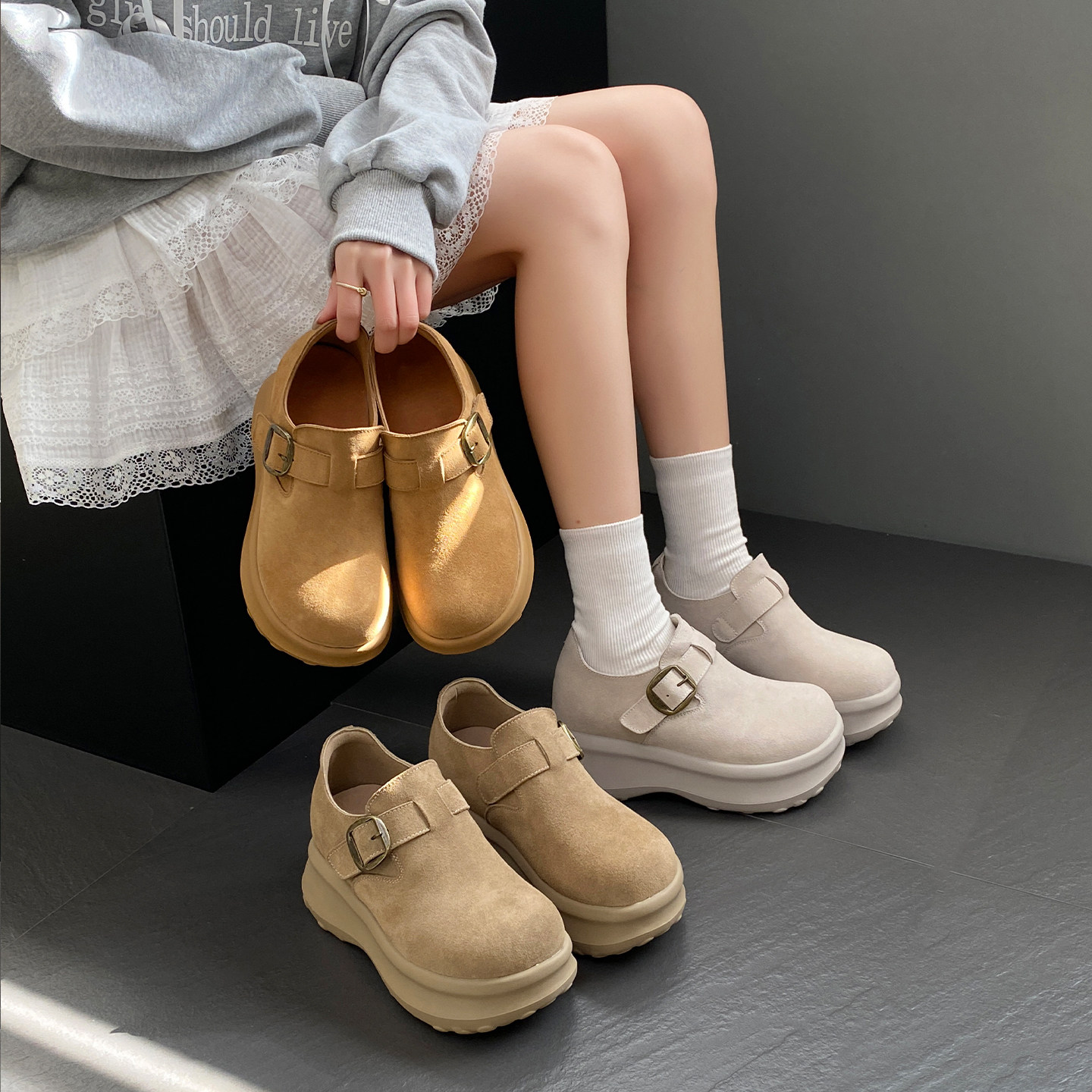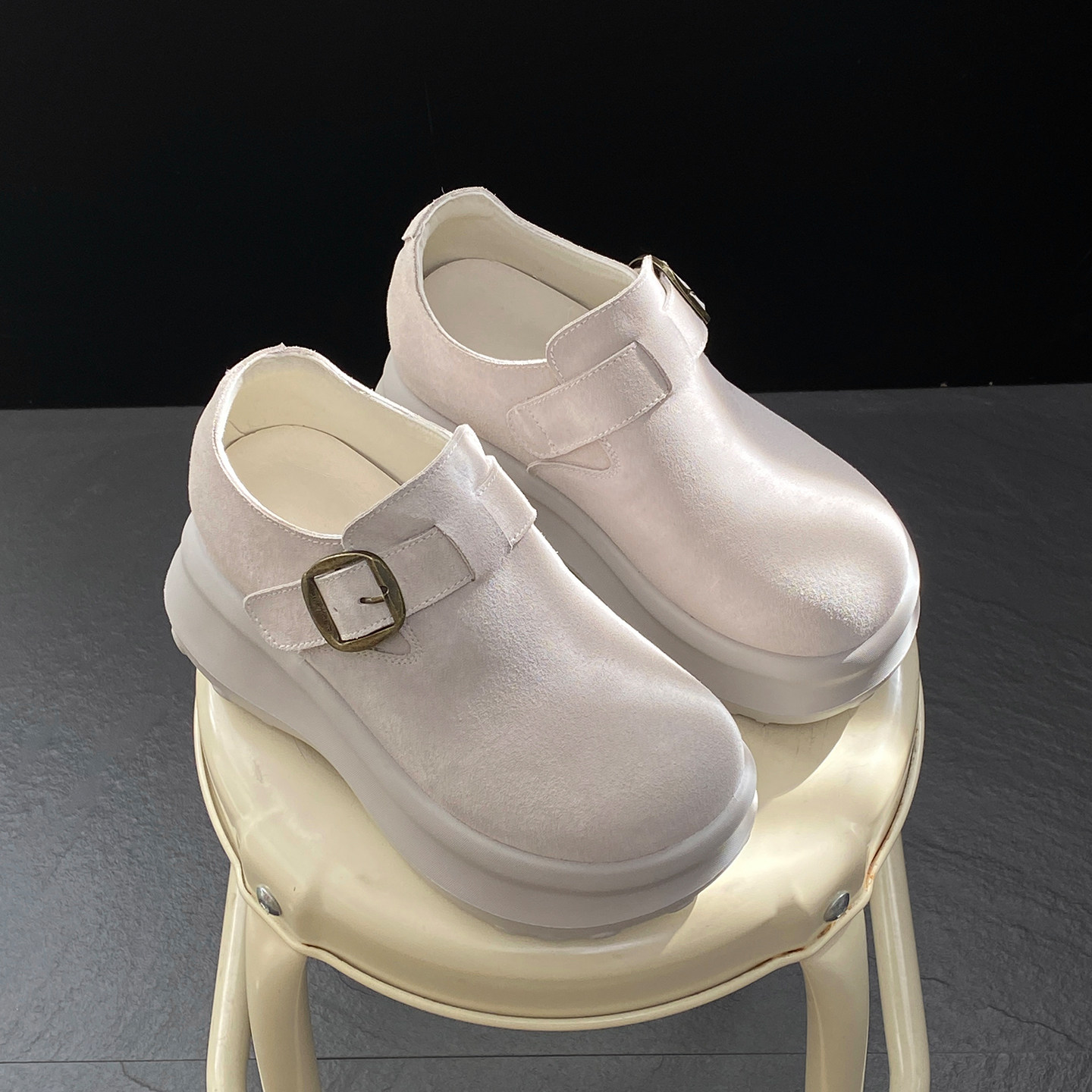 10cm内增高勃肯鞋女真皮防水全包厚底外穿增高懒人一脚蹬博肯鞋子