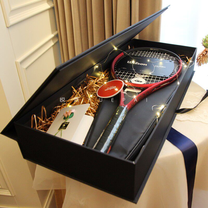 悦派长方形超大号礼品盒羽毛球拍包装盒高档黑色网球拍礼物盒空盒
