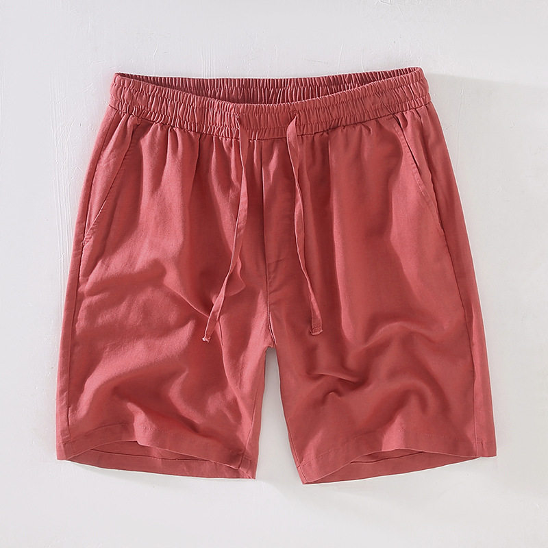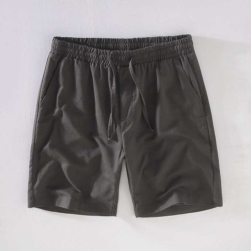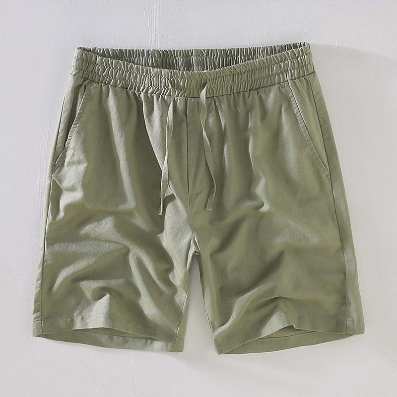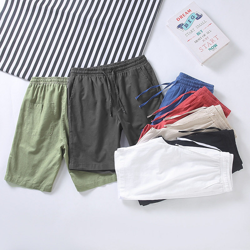 棉麻短裤男款夏季薄款透气亚麻中裤夏天男士简约抽绳休闲五分裤子