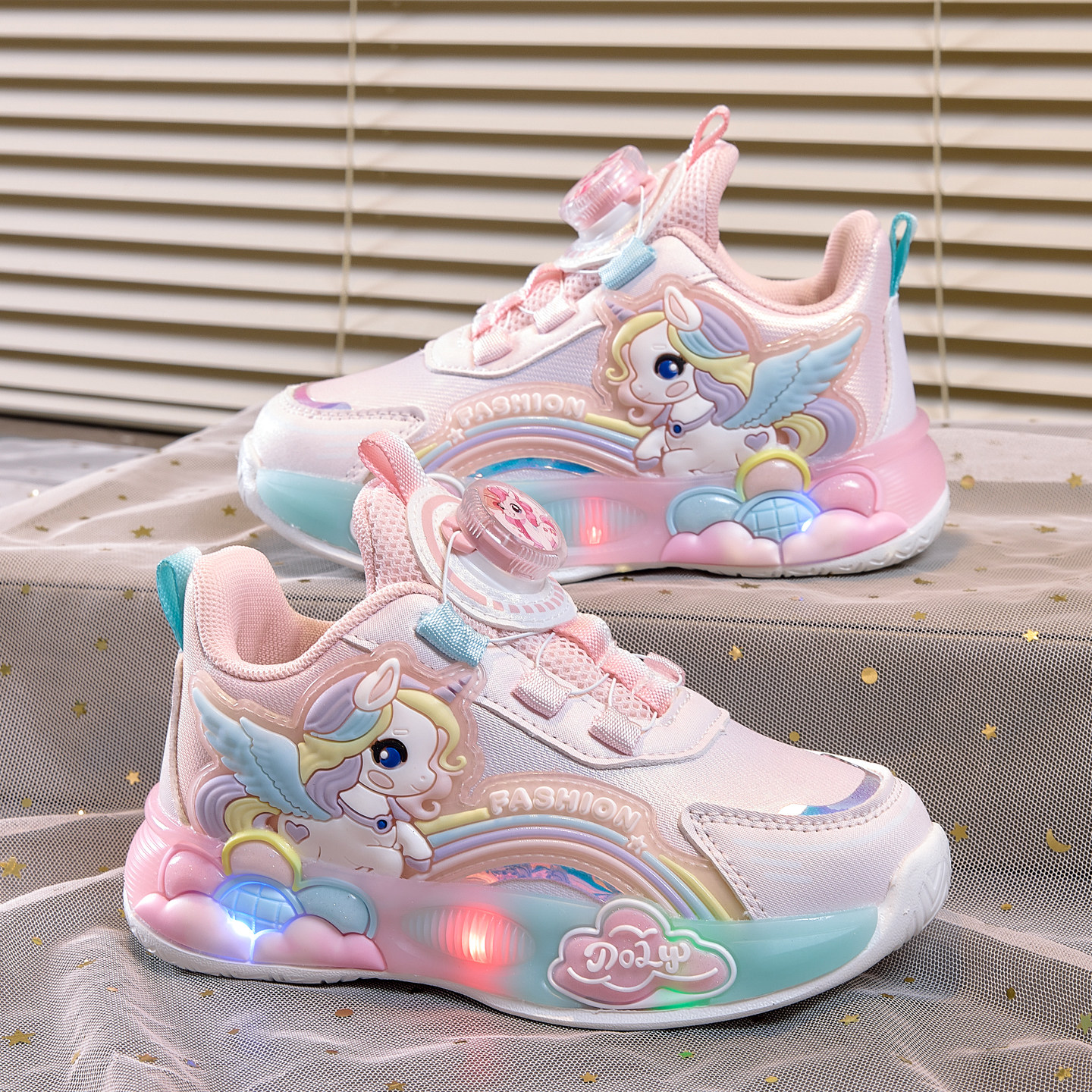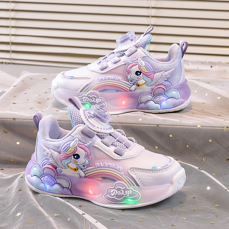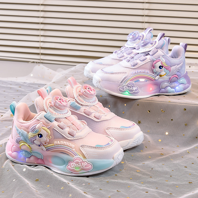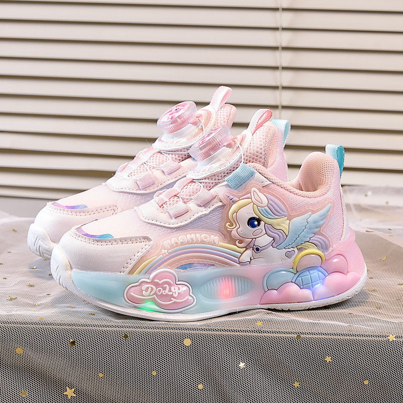 女童公主鞋宝宝鞋子2026春秋季新款儿童发光鞋亮灯网面透气运动鞋