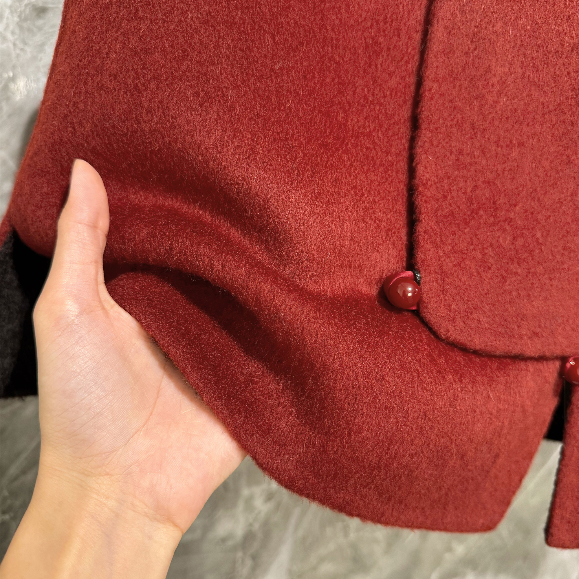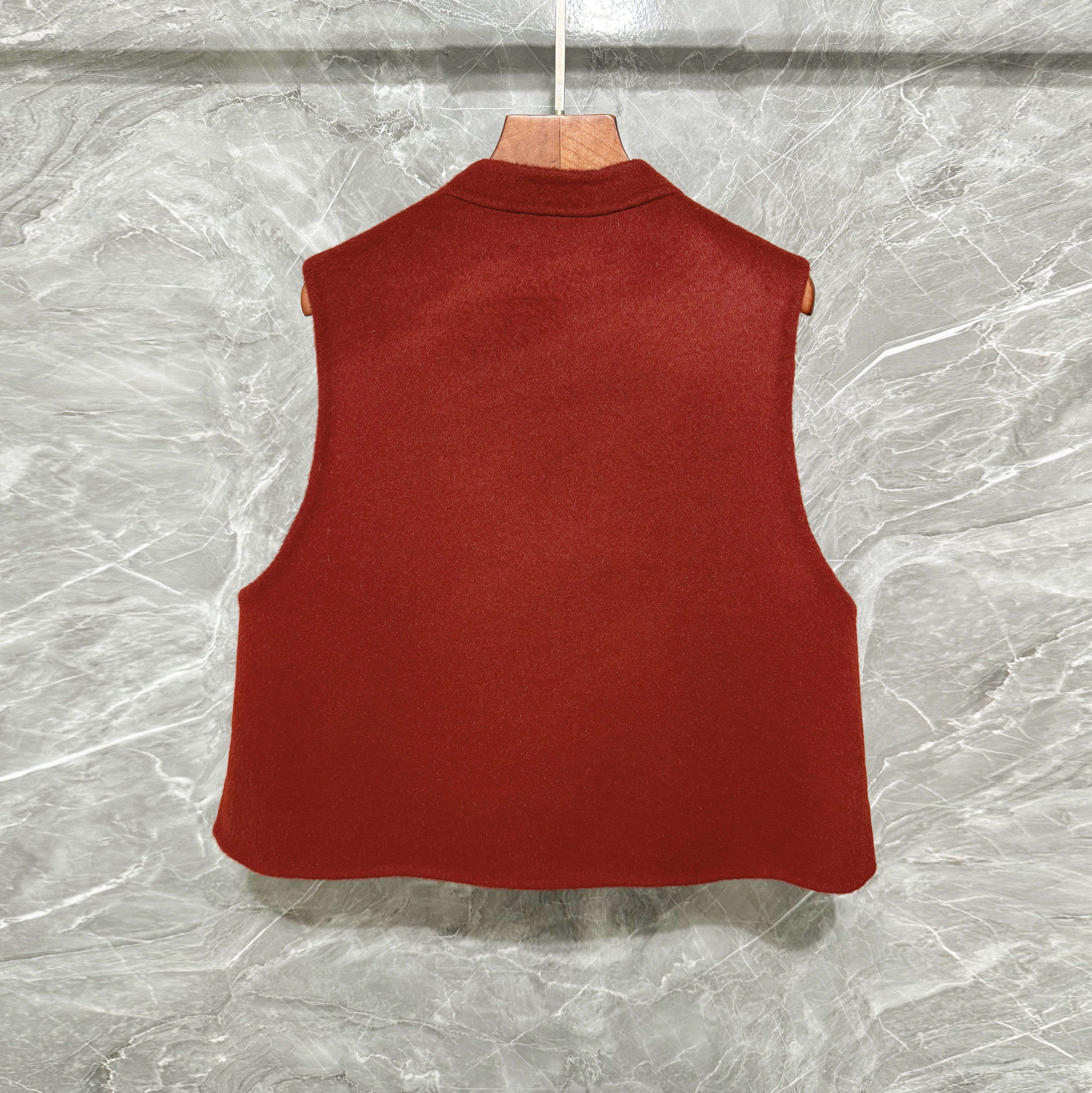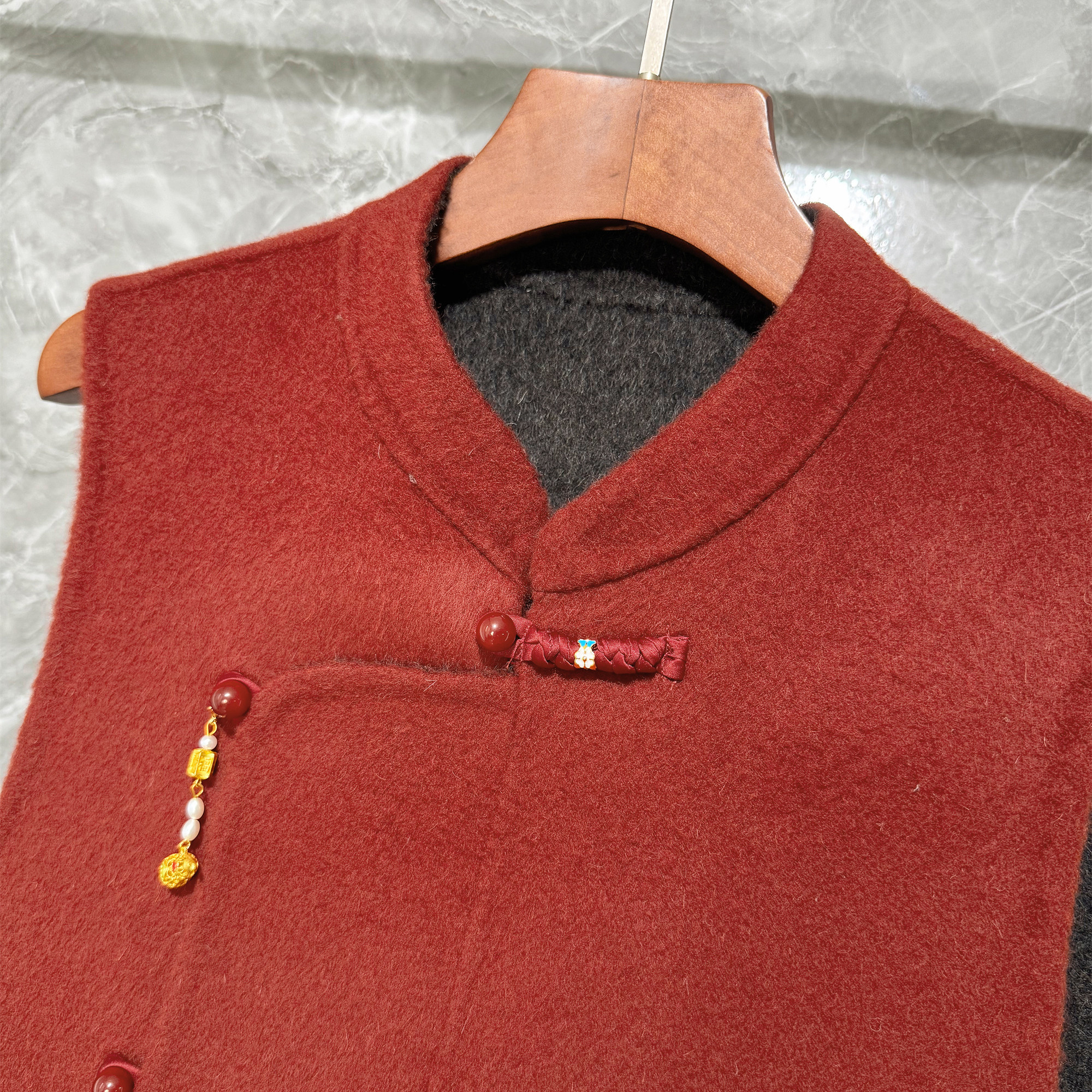 新中式国风年轻款双面呢羊毛马甲女红色短款背心毛呢外套新年外套