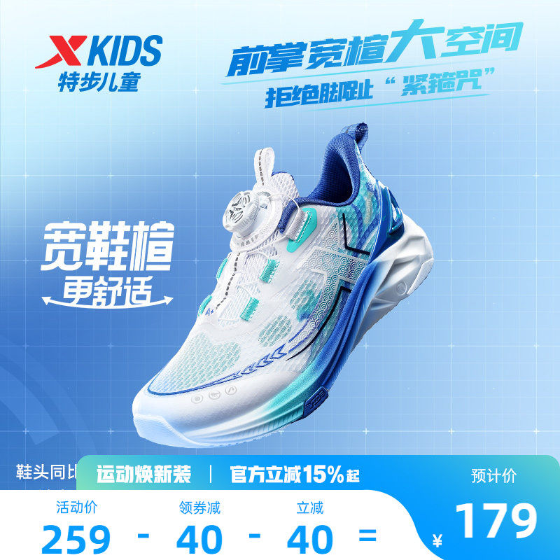 特步童鞋儿童旋转扣跑步鞋运动鞋防滑男女童透气鞋子A+健康成长鞋