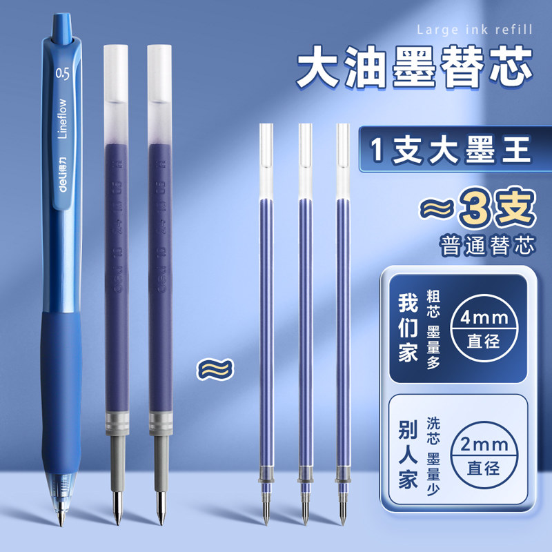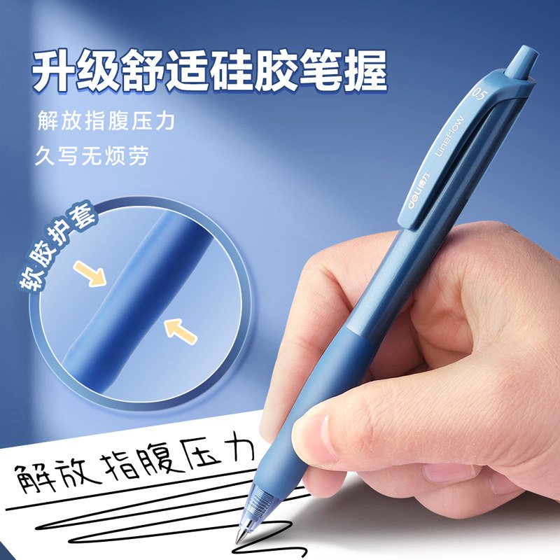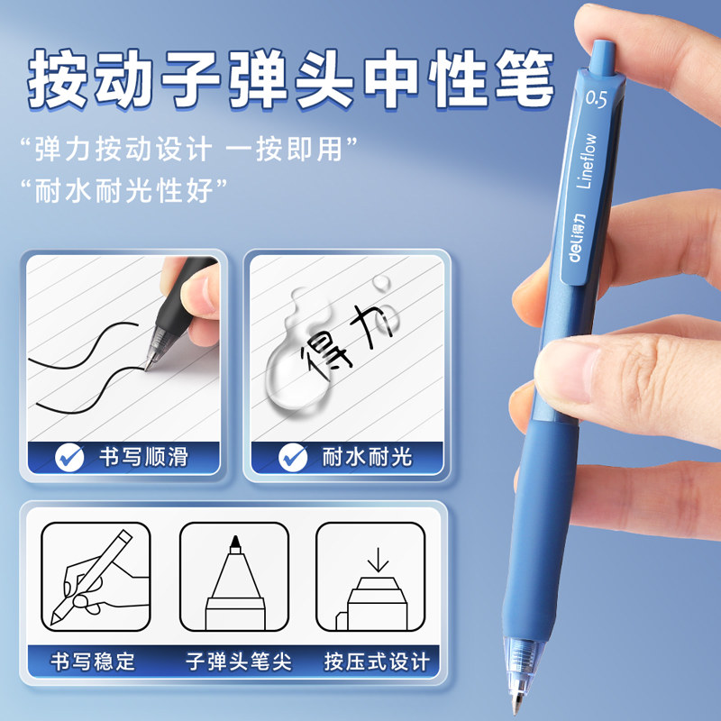 得力蓝色中性笔按动式小学生专用臻顺滑蓝色水笔S60蓝笔刷题笔速干签字版碳素笔圆珠笔初中生专用黑笔0.5mm