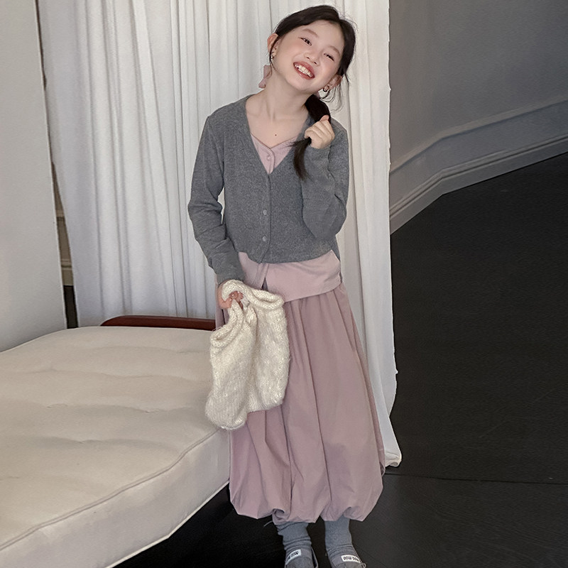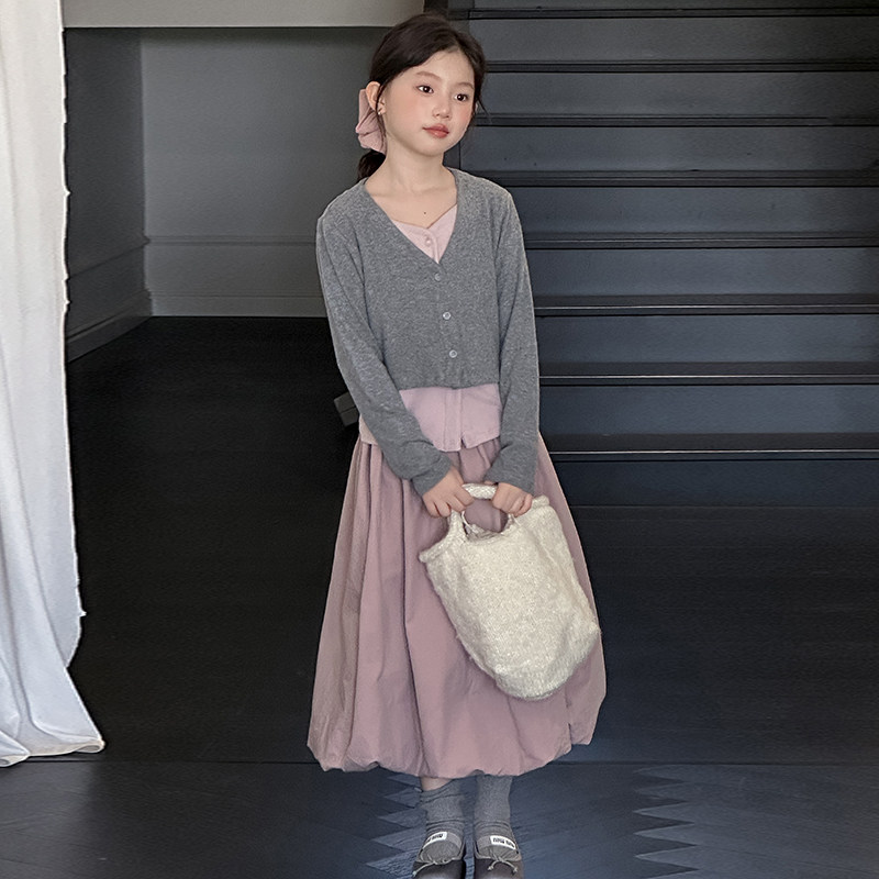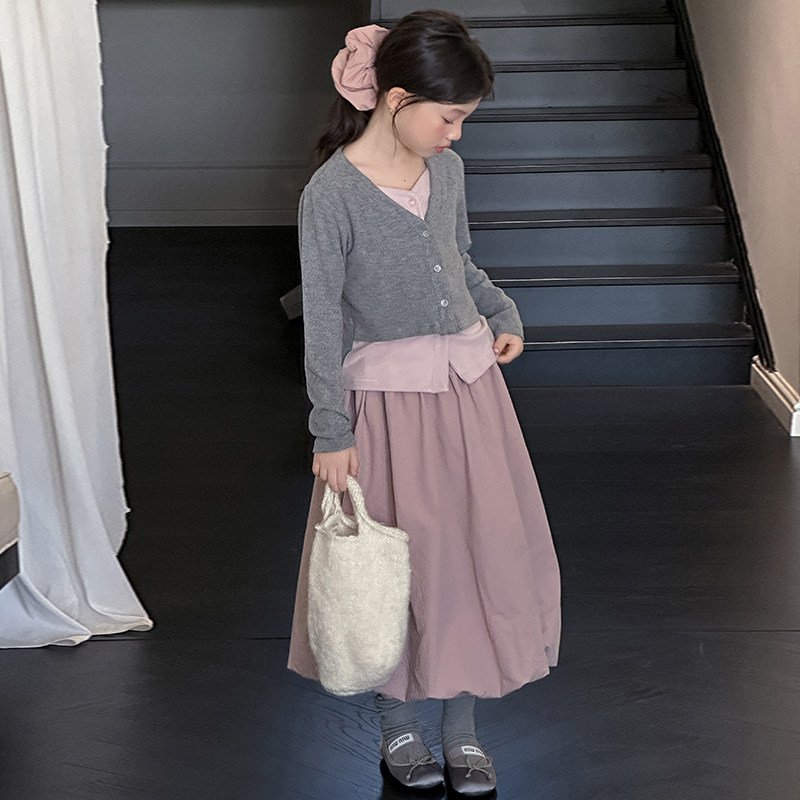 女童巨好看套装春装儿童女孩洋气时髦假两件上衣花苞裙子2026新款
