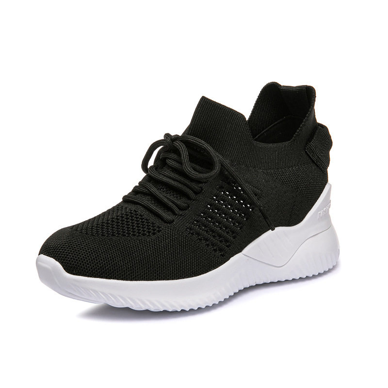 内增高女鞋2025春季新款运动鞋轻便百搭黑色针织网面透气休闲软底