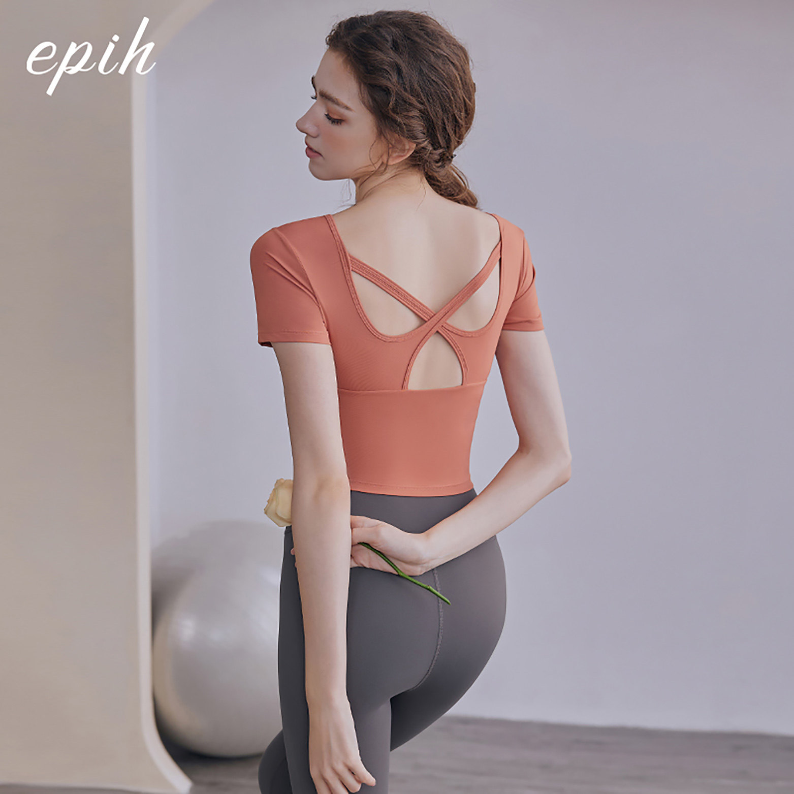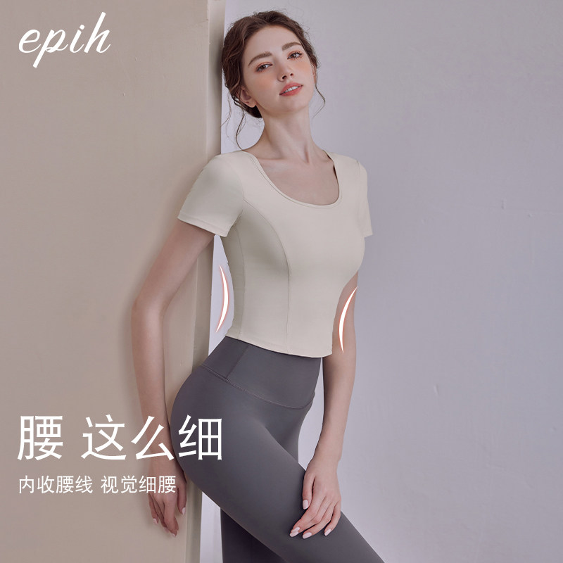 2026新款瑜伽服上衣女夏薄款健身衣运动普拉提套装短袖带胸垫美背