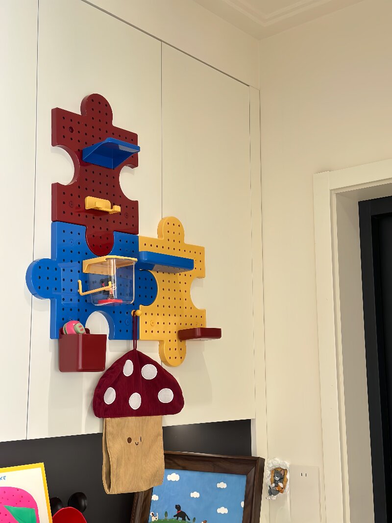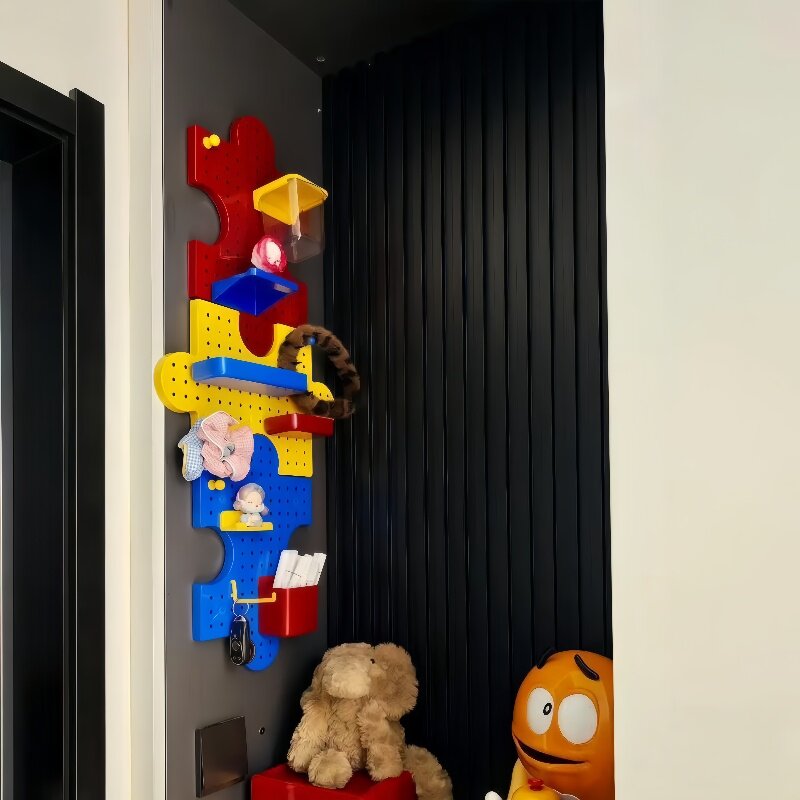 创意拼图洞洞板置物架子DIY墙上免打孔儿童书桌学习桌墙面收纳板