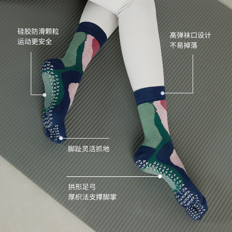 2025新款五指秋冬瑜伽袜子中筒防滑专业女普拉提袜子长筒分趾运动