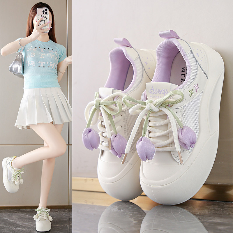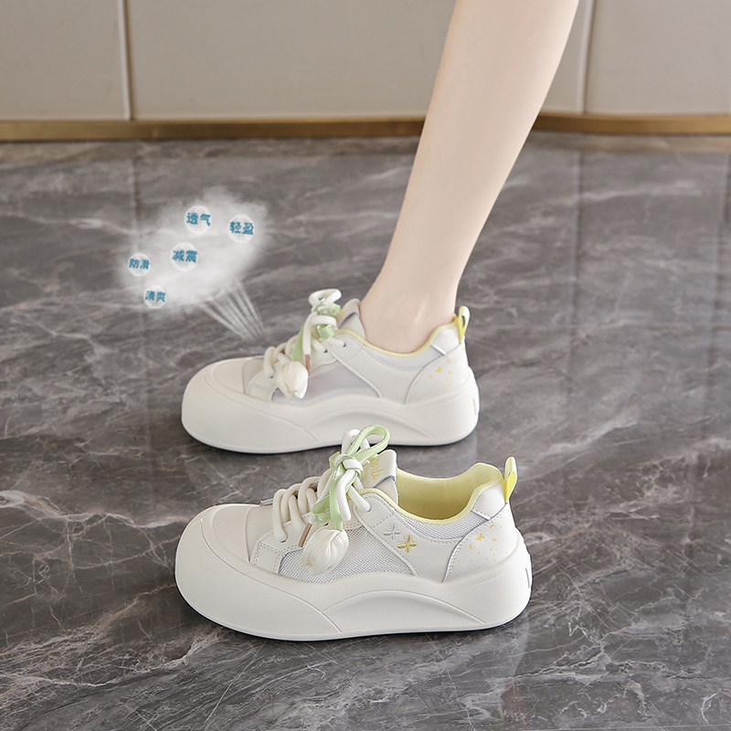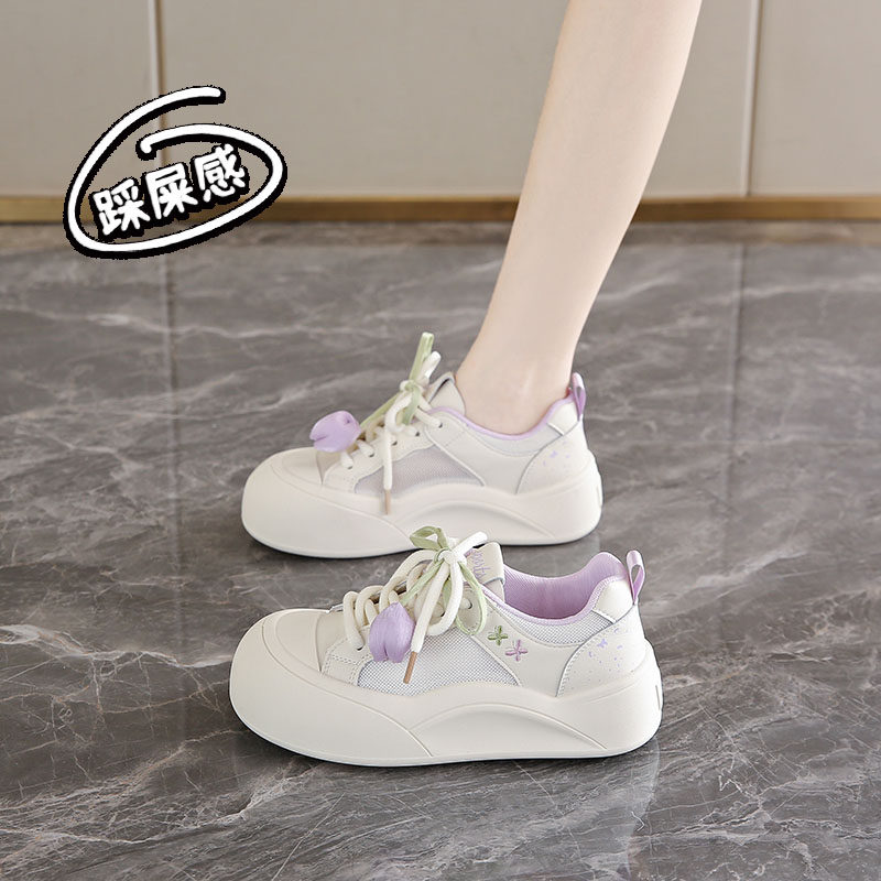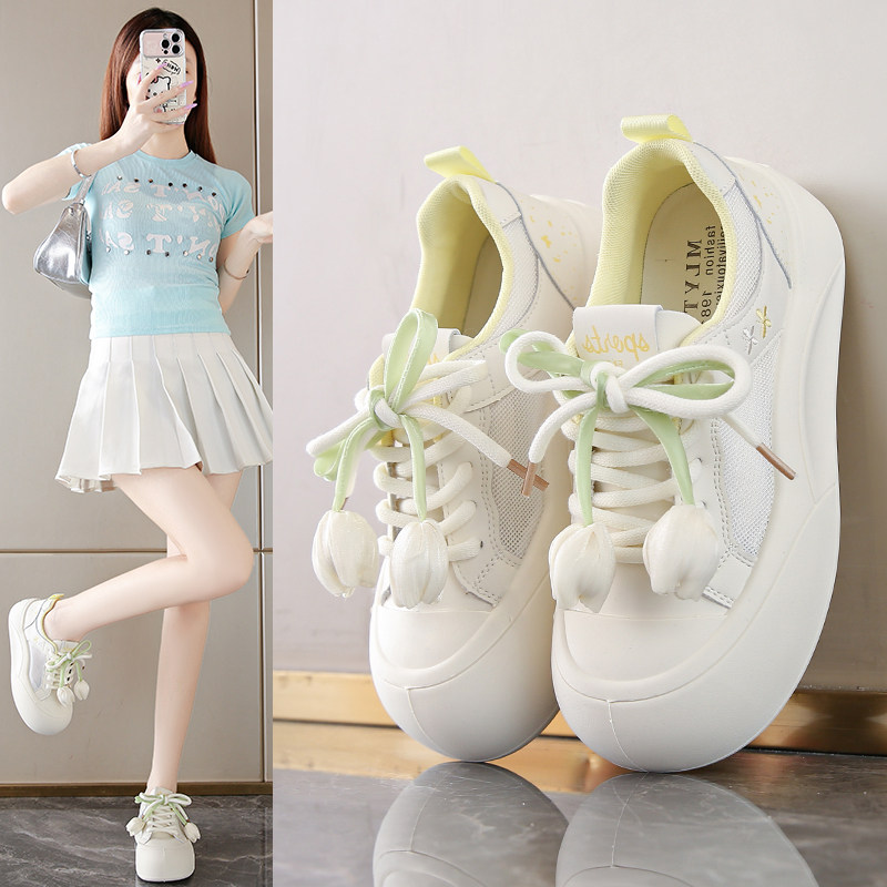 6CM内增高小白鞋女2025夏季新款小个子厚底配裙子网面面包鞋34码