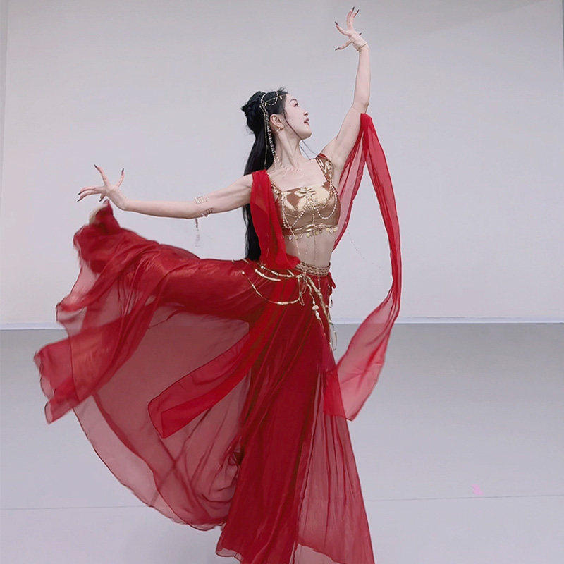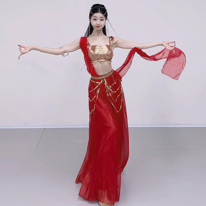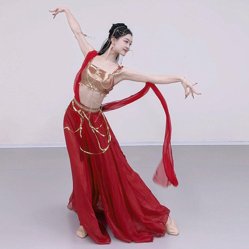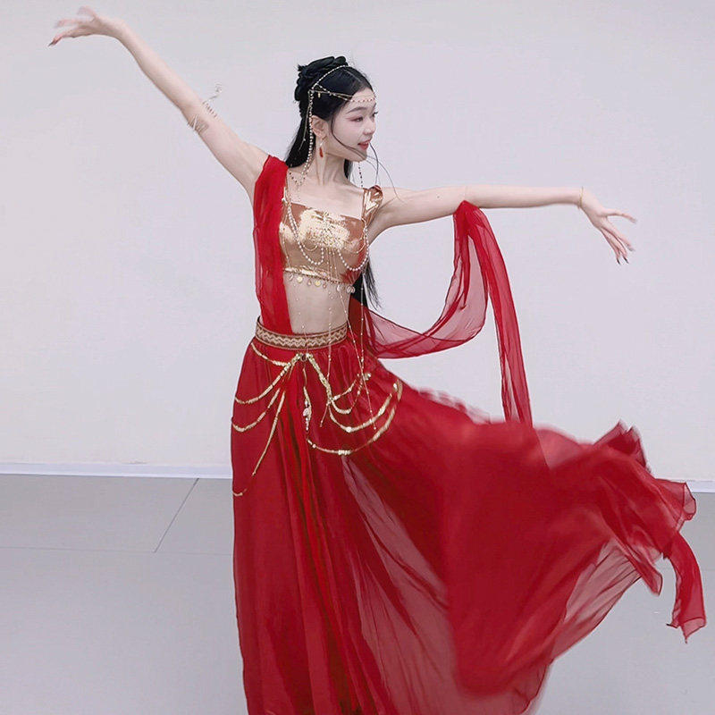 古典舞2026年敦煌舞蹈套装成人女唐风吊带大摆裙演出服披帛练功服