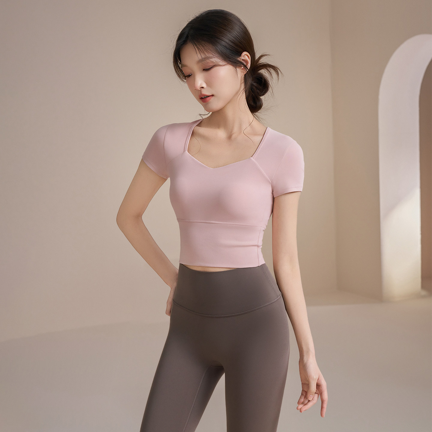 元气女孩瑜伽服女春夏带胸垫运动上衣跑步短袖普拉提训练健身套装