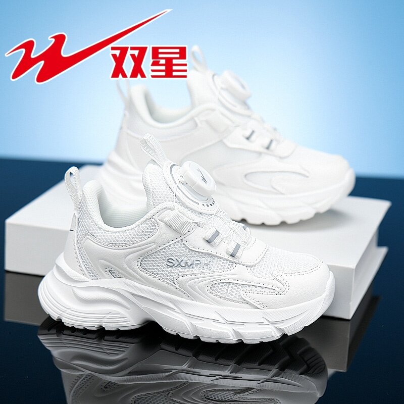 双星童鞋儿童小白鞋男童2026春秋款网面透气运动鞋女童白色跑步鞋