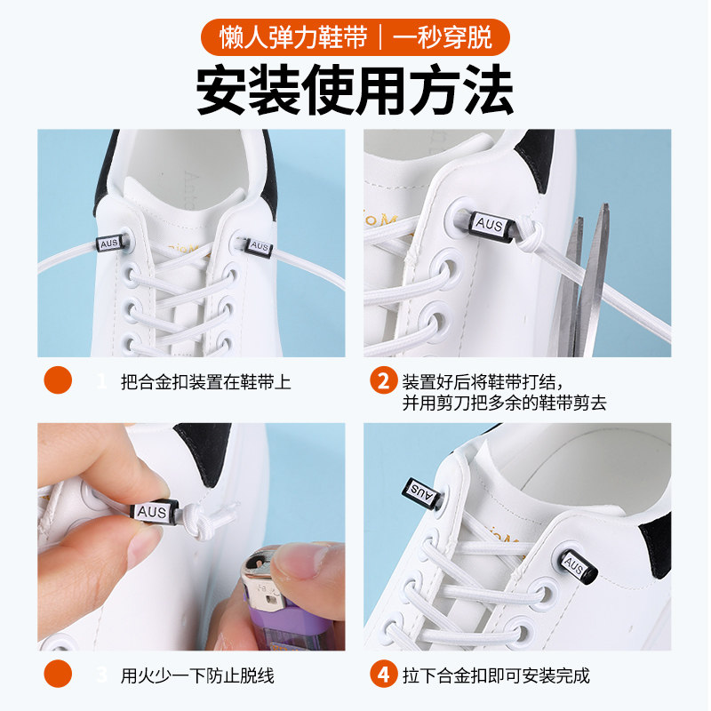 适用于nike耐克懒人鞋免系鞋带一脚蹬神器男女款圆绳卡扣固定器白