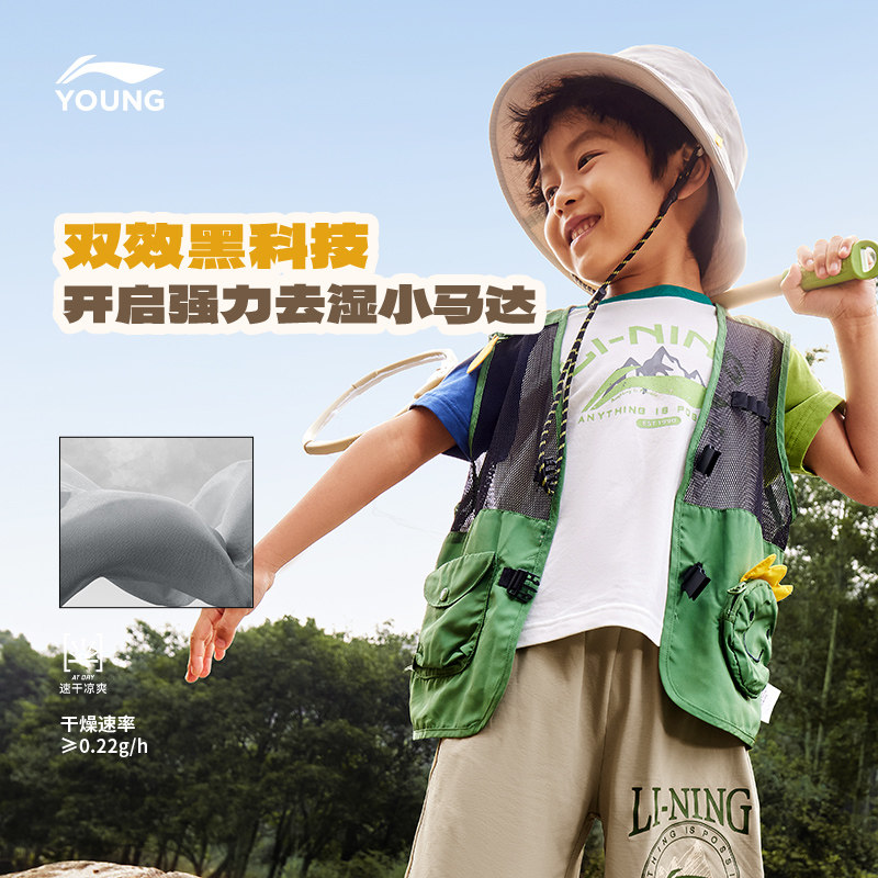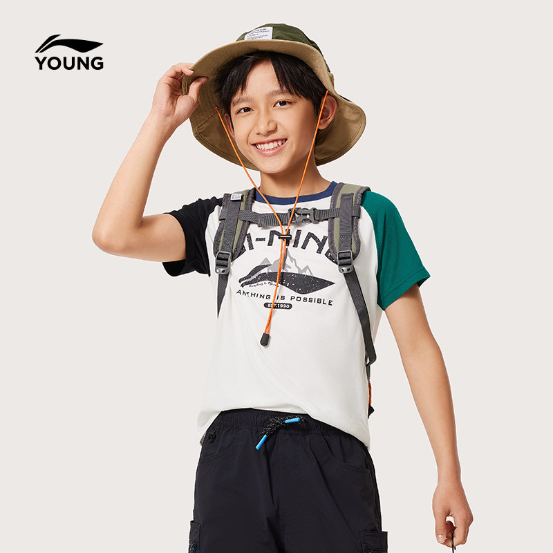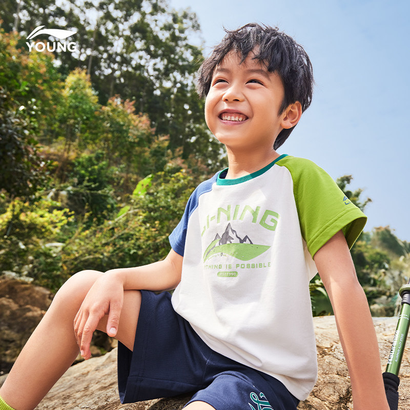李宁童装短袖T恤男女小大童新款运动生活系列夏季上衣凉爽童装