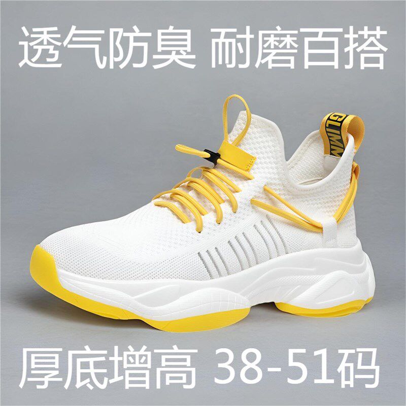 男鞋大码夏季透气防臭厚底增高网面孔运动休闲鞋子男士2024新款鞋