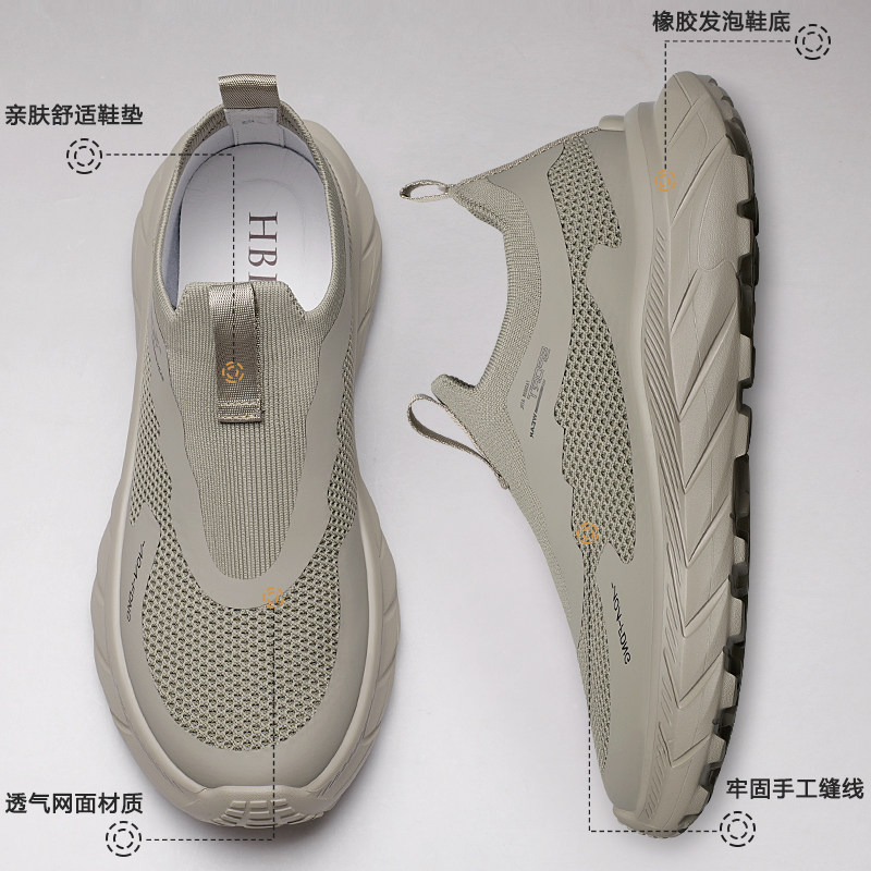 男鞋春季新款透气防臭飞织网面一脚蹬软底增高男士休闲运动鞋子潮