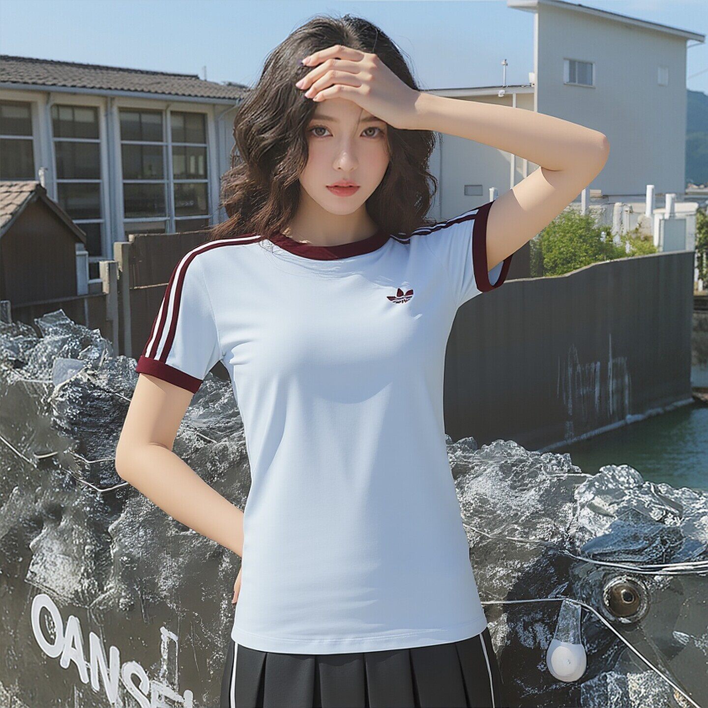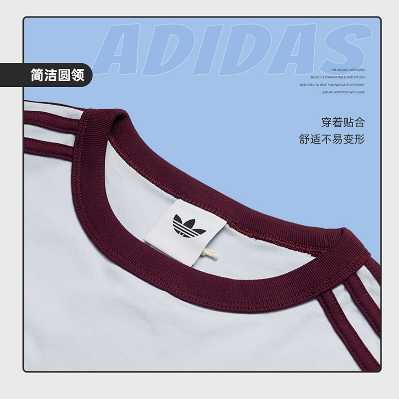 阿迪达斯三叶草短袖女装2026新款蓝色透气运动半袖女士修身T恤衫