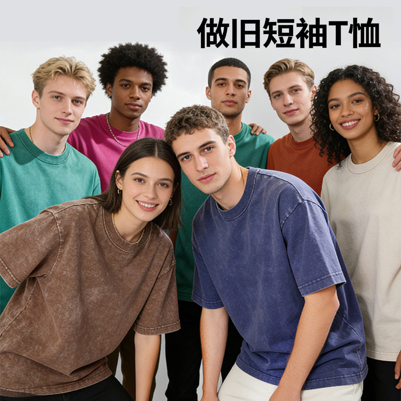 美式潮牌重磅水洗做旧纯棉T恤定制印logo短袖刺绣复古宽松青少年