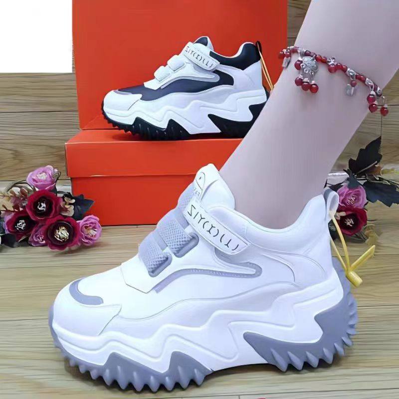 品牌鞋春秋款真皮老爹鞋女小个子内增高厚底小白鞋百搭休闲运动鞋