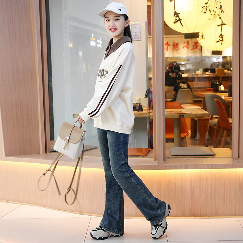 女童套装2025春秋款青少年初高中生宽松假两件卫衣牛仔裤休闲套装