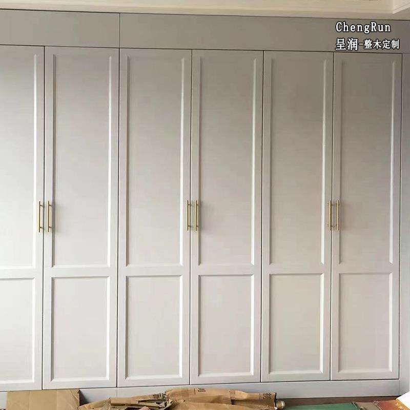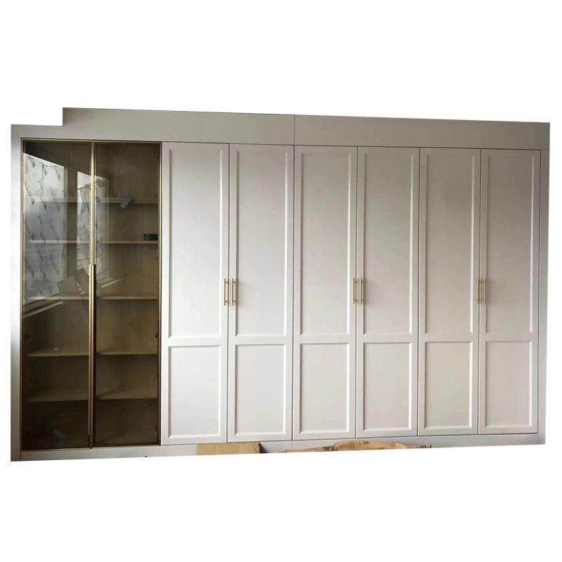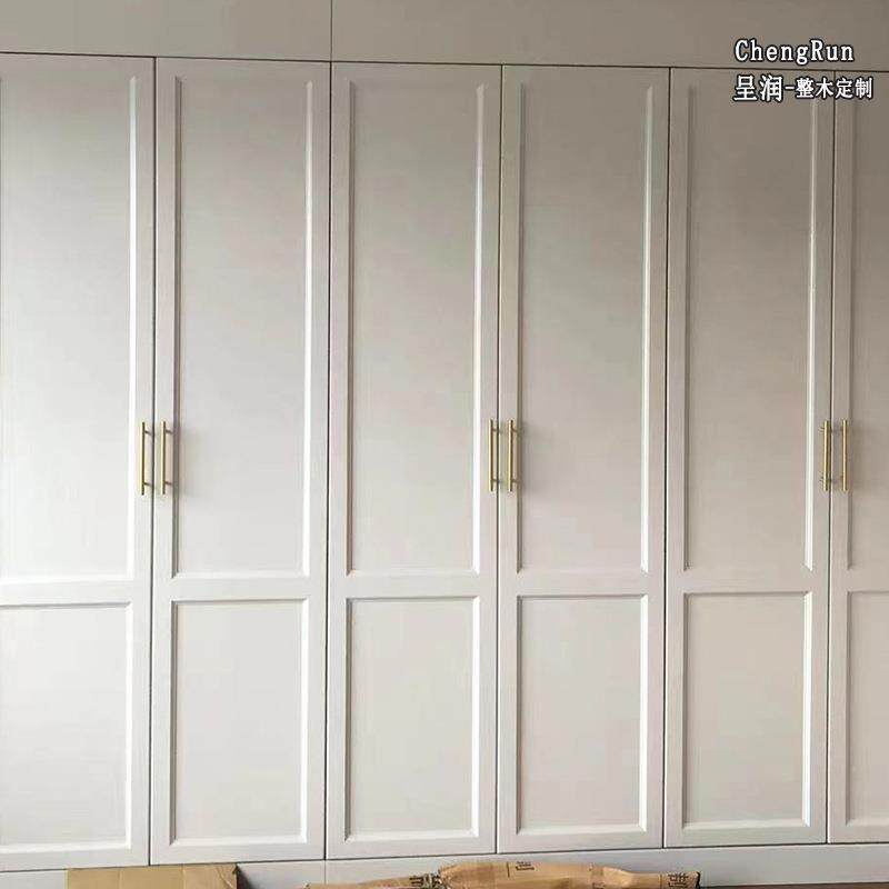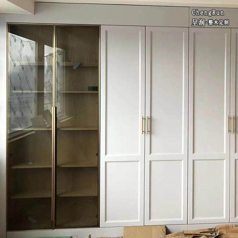 简美式轻奢实木衣柜定制卧室玻璃平开门现代灰色奶油风大衣柜