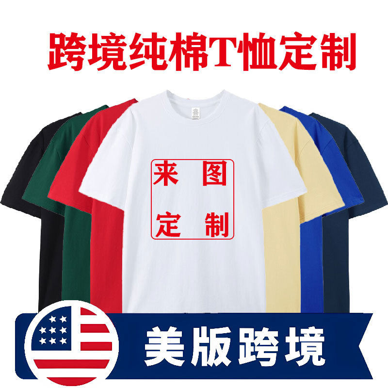 跨境外贸欧美码纯棉t恤定制logo短袖文化广告衫工作服印字图