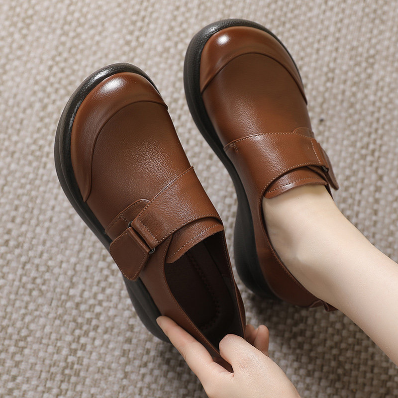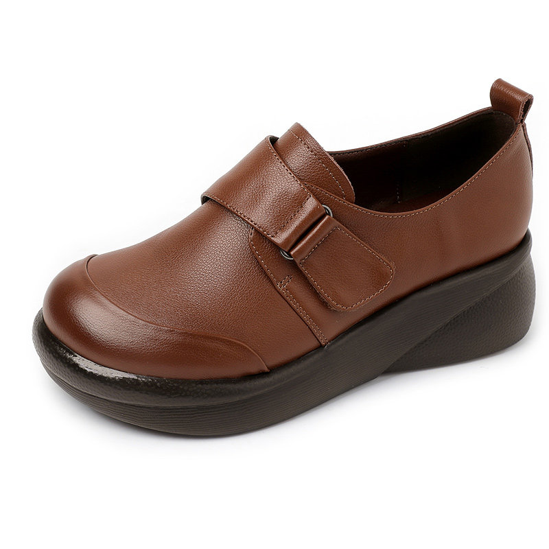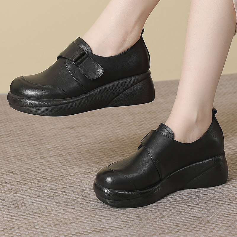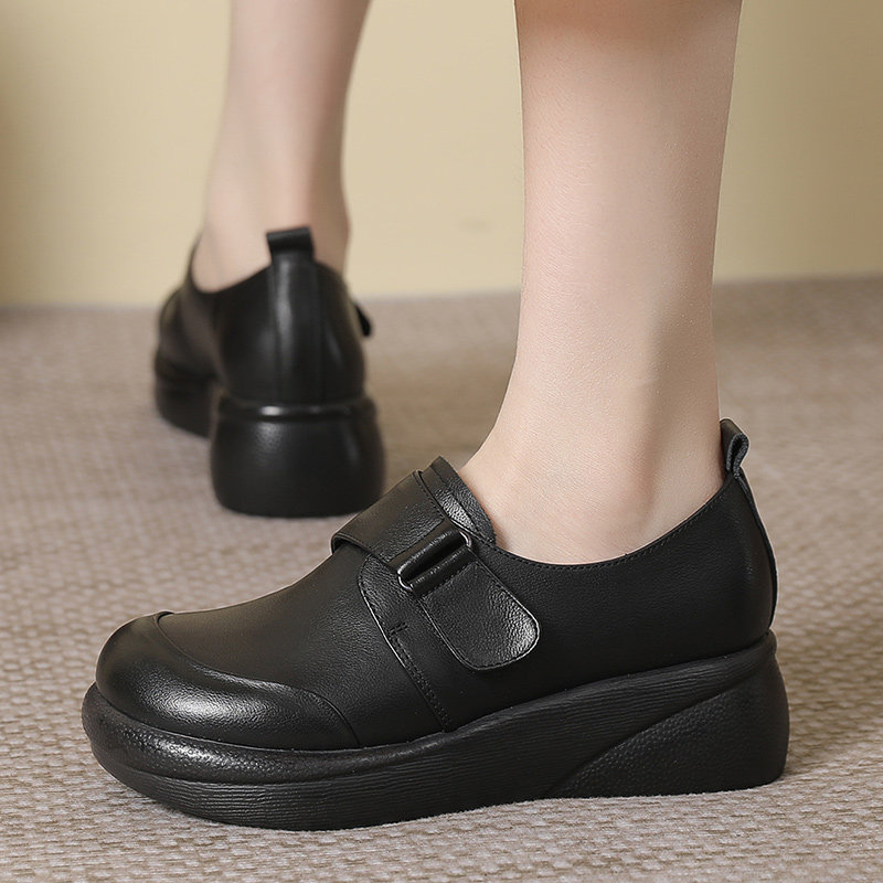 头层牛皮厚底软底妈妈鞋女中老年防滑舒适皮鞋不累脚软皮平底单鞋