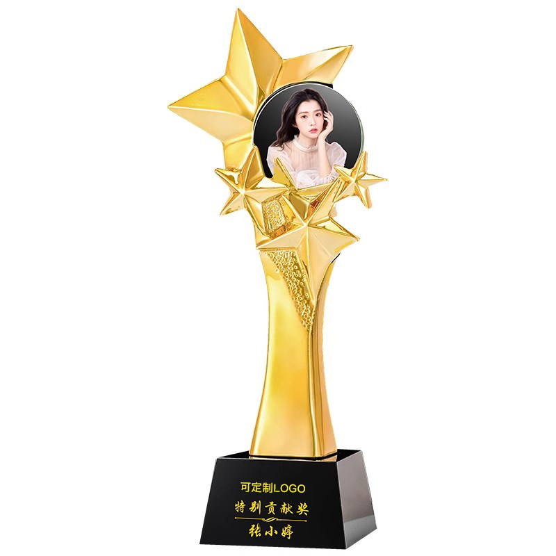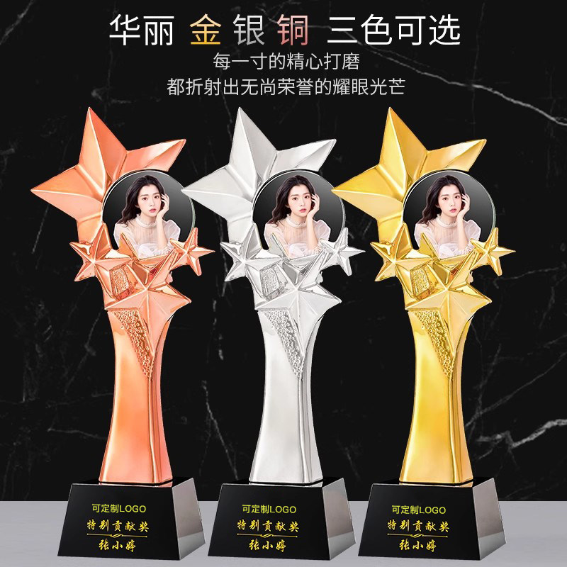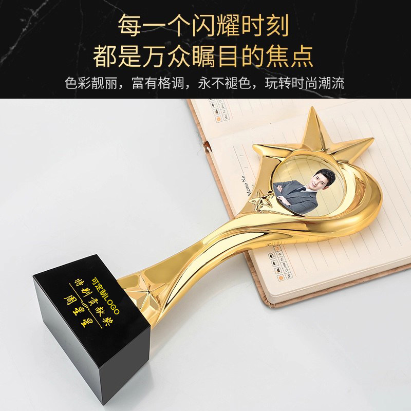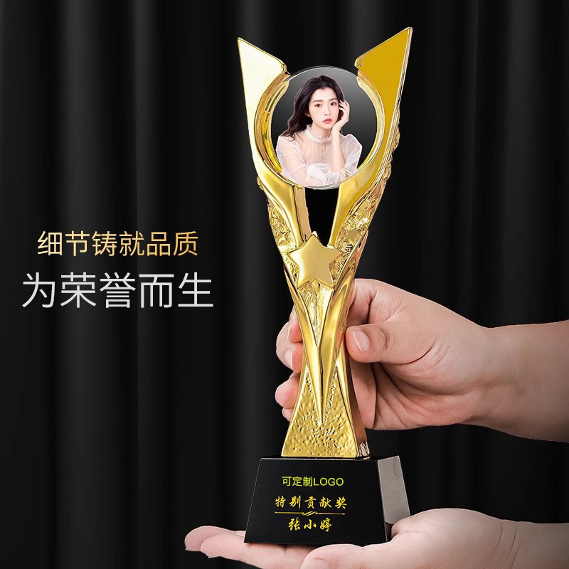 彩印人像水晶奖杯照片定制定做年会员工颁奖表彰纪念销冠奖牌刻字