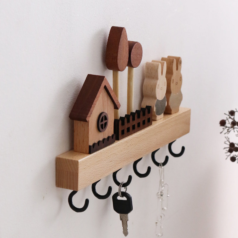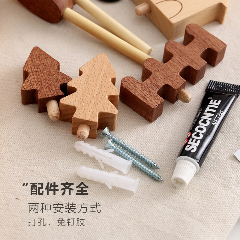 创意进门玄关挂钩入户钥匙挂钩实木壁挂式收纳架现代简约摆件装饰
