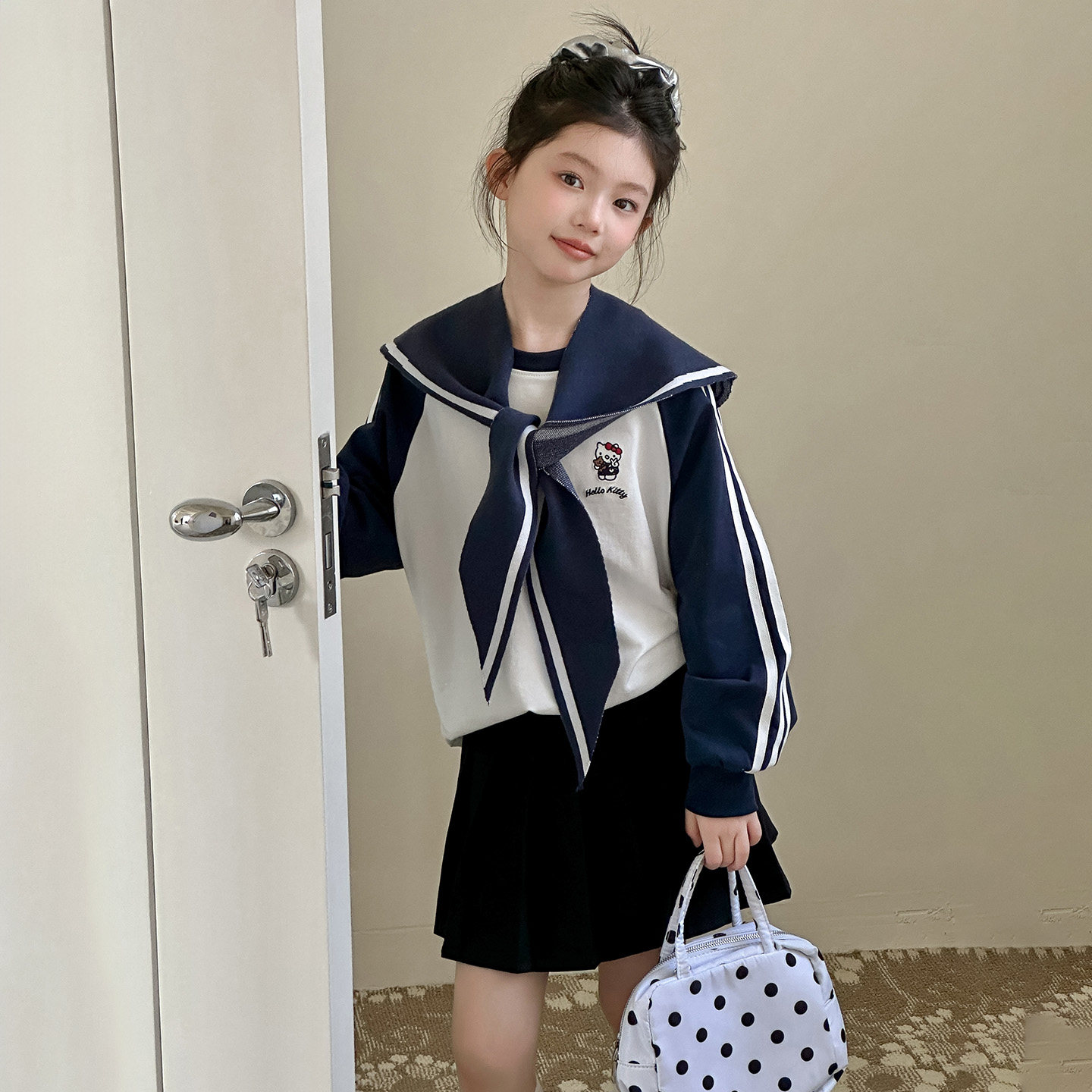 2026新款春装女童套装海军风儿童春季洋气春款大童时髦女孩短裙子