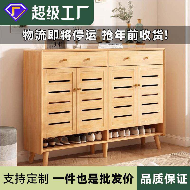 透气实木鞋柜北欧家用口多层入户防关尘63051门木质小型鞋柜收纳