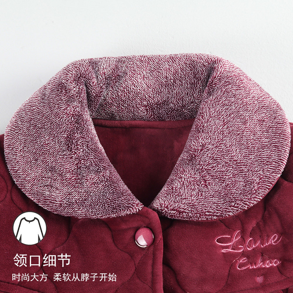 俞兆林珊瑚绒睡衣上衣单件中长款冬季三层加厚夹棉女款加大码居家
